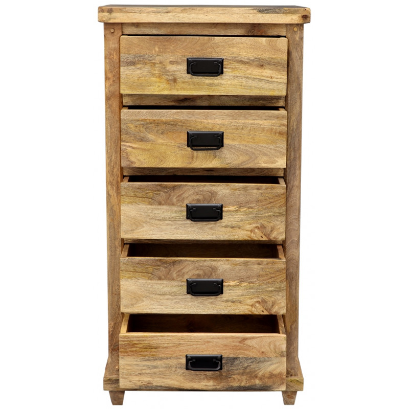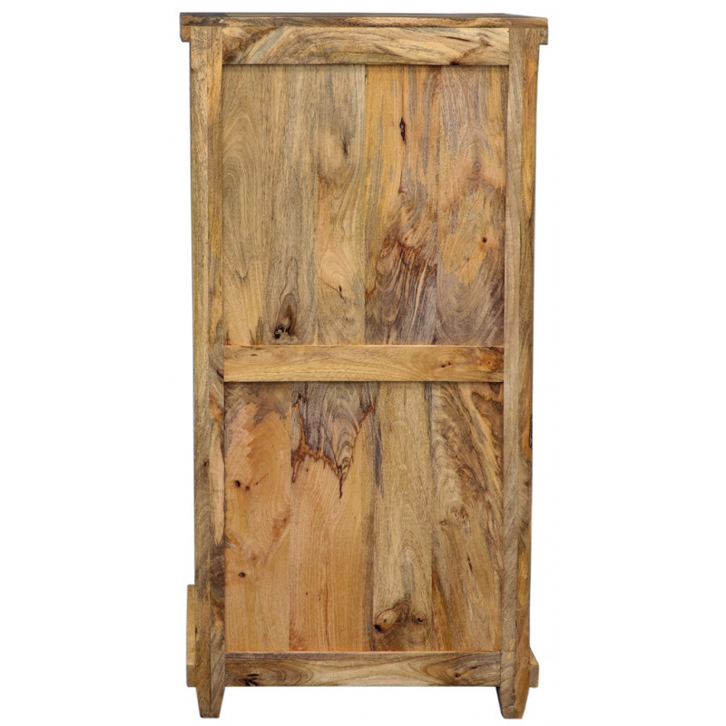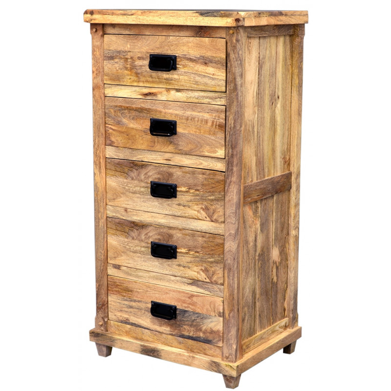 Komoda z masívu Devi je vyrobená z kvalitného masívneho mangového dreva.Komoda je vyrobená z masívu mango, má 5 priestranných zásuviek s kovovým úchytom. Komody z masívu, ktoré máme skladom, si môžete pozrieť v našom showroome. Indický koloniálny nábytok mango masív.