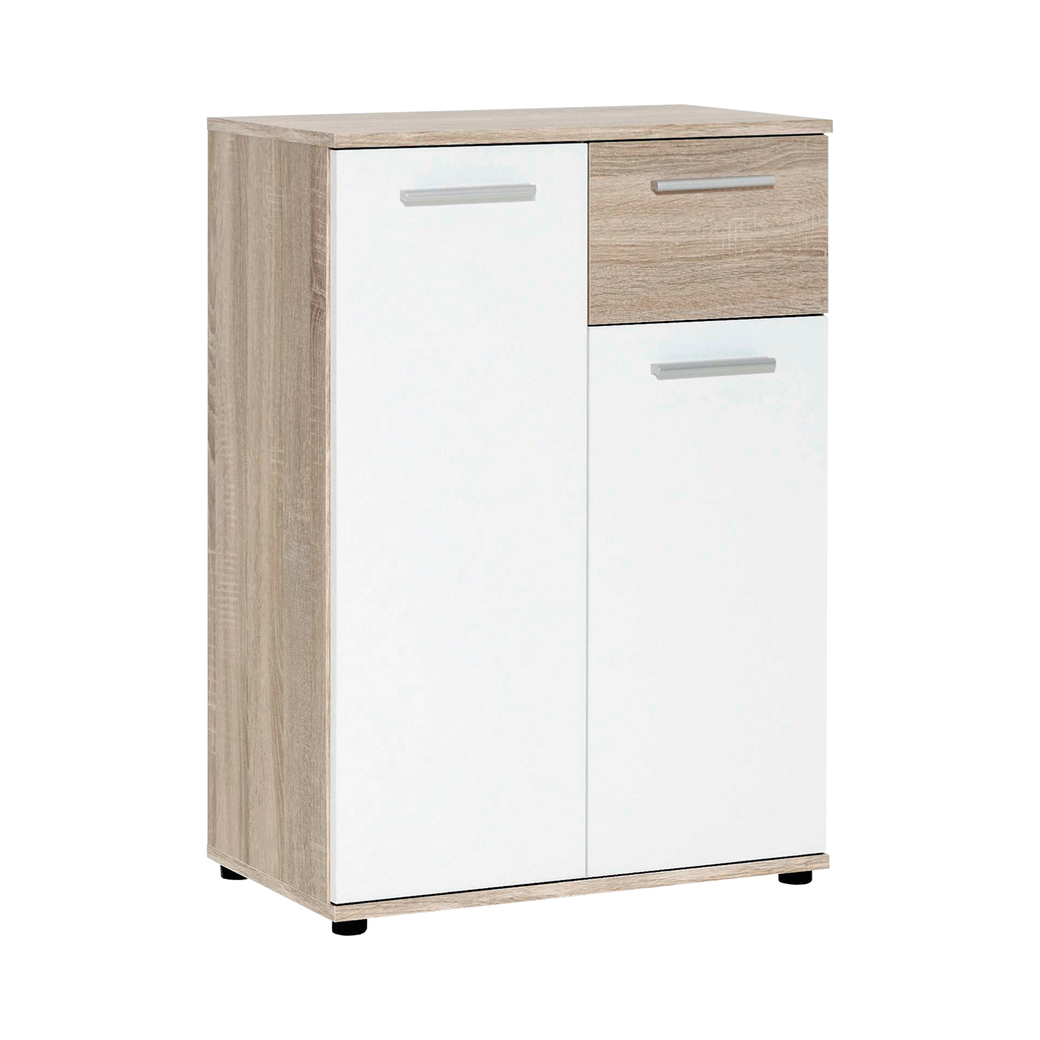 Nábytok v populárnom prevedení dub Sonoma / biela vyzerá skvele v každej izbe. Komoda JACKY 1 dub Sonoma / biela sa teda bude hodiť do spálne, obývačky aj predsiene zariadenej nábytkom vo farebnom prevedení dub Sonoma / biela, všade je potrebné mať miesto na najrôznejšie veci. Moderná komoda obsahuje jednu zásuvku s kovovými pojazdmi. Komoda obsahuje malé a veľké dvierka, vnútri 2 variabilné police. Komoda teda pojme najrôznejšie veci, oblečenie, doplnky i dokumenty. Komoda JACKY 1 vo farebnom prevedení dub Sonoma / biela bude v pokoji stáť samostatne, alebo spolu s ďalšími komodami JACKY vytvorí šikovný úložný priestor na najrôznejšie veci.
