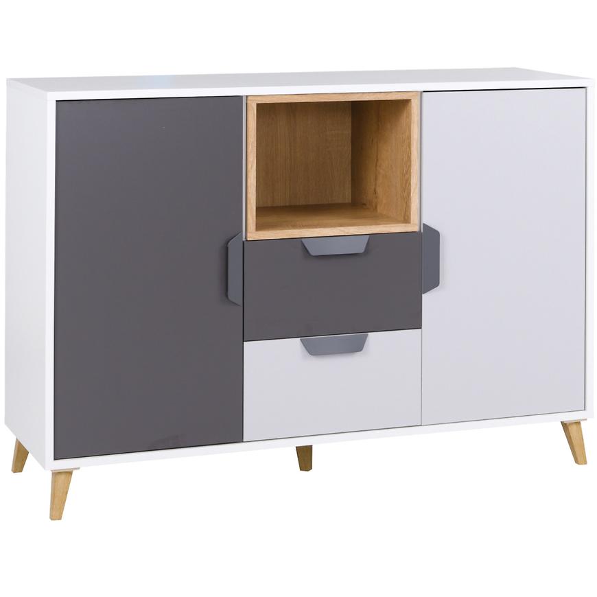 Komoda Joker 8 Biely/Grafit/Šedá/Dub Lefkas