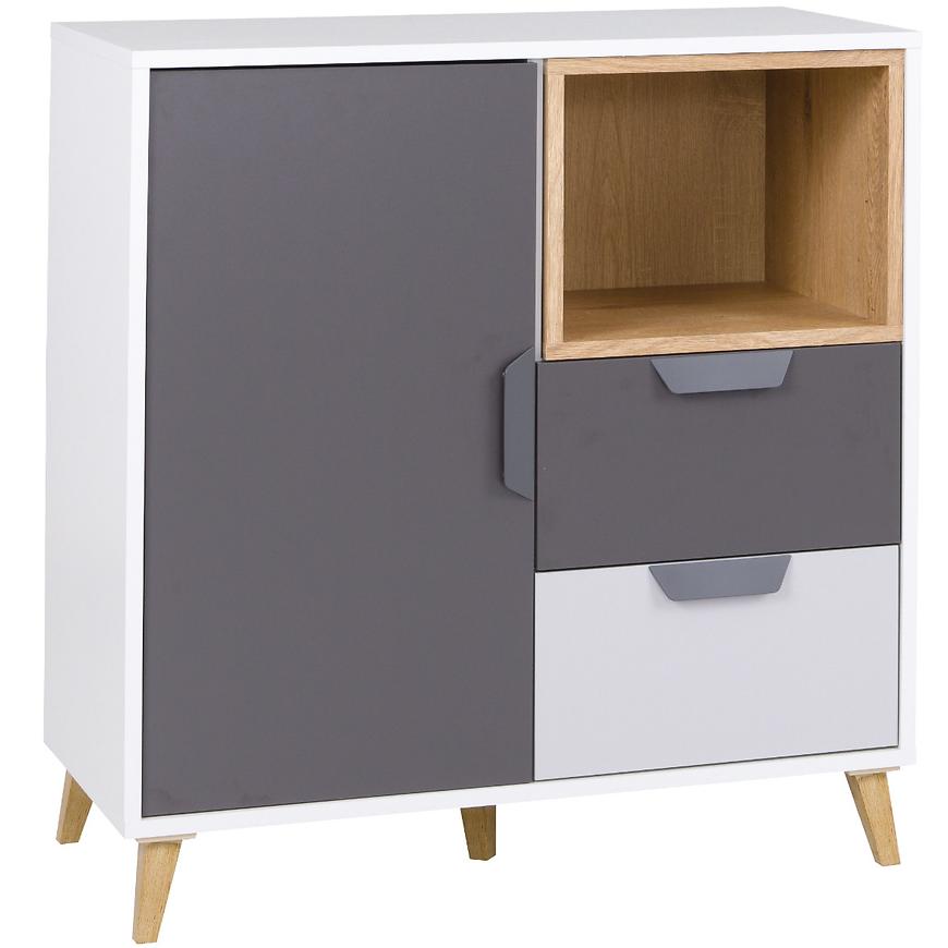 Komoda Joker 9 Biely/Grafit/Šedá/Dub Lefkas