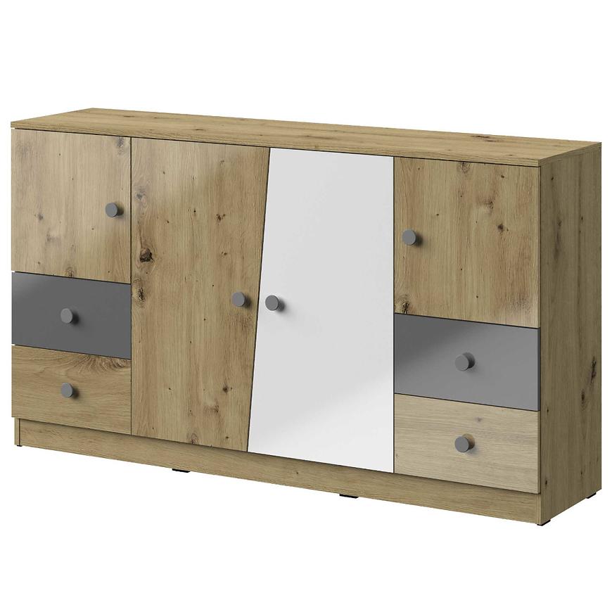 Komoda Joker 8 Biely/Grafit/Šedá/Dub Lefkas