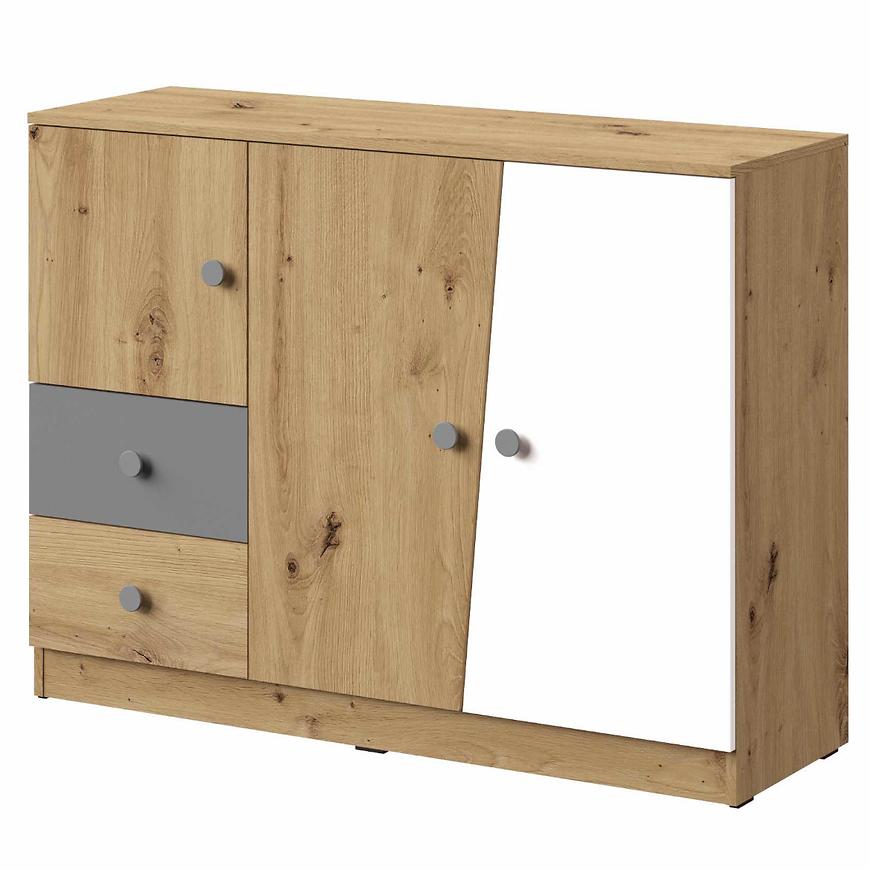 Komoda Joker 9 Biely/Grafit/Šedá/Dub Lefkas