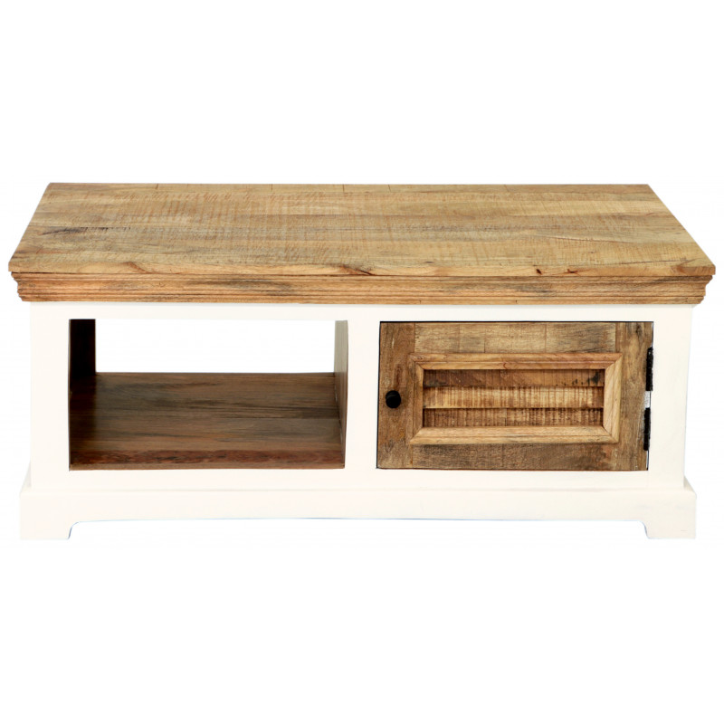 Konferenčný stolík z masívu Agni je vyrobený z kvalitného masivného mangového dreva vo vidieckom štýle.Konferenčný stolík má jedny dvierka s úložným priestorom a vnútornou policou. Je vyrobený z masívu mango. Konferenčné stolíky, ktoré máme, skladom si môžete pozriet v našom showroome. Indický koloniálny nábytok mango masív.