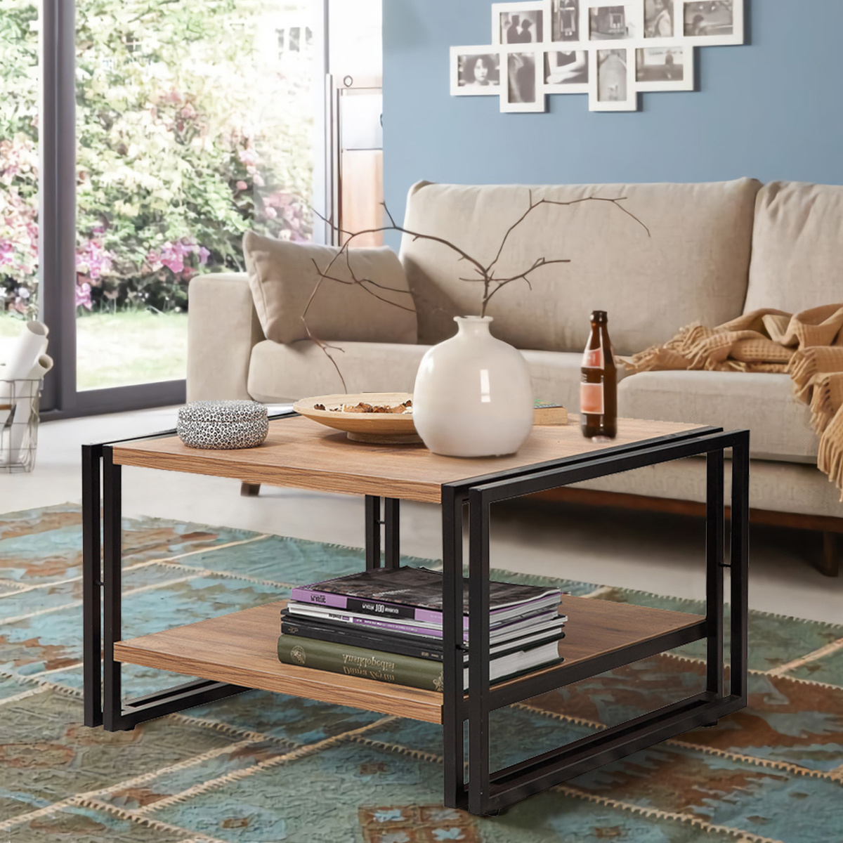 Kovový rám s hrúbkou 2 cm dodáva celkovému dizajnu nádych elegancie a zároveň zaisťuje výnimočnú stabilitu. Kombinácia atlantickej borovice a čiernej farby vytvára výrazný kontrast, vďaka ktorému sa tento konferenčný stolík stane ústredným bodom každej miestnosti.