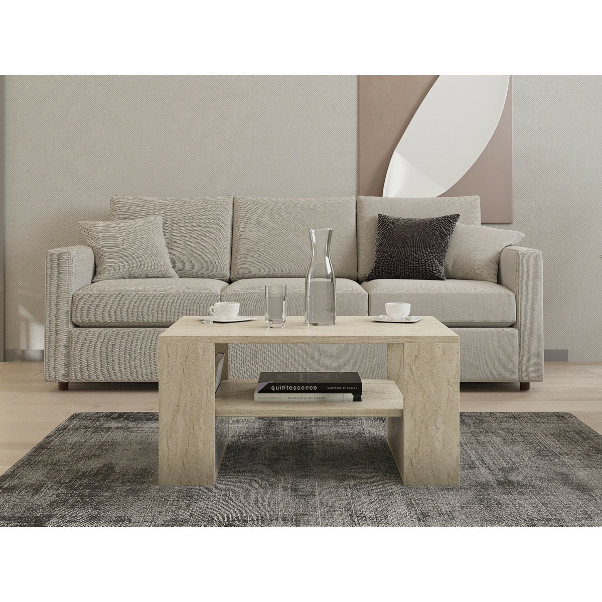 Konferenčný stolík Iris Travertine dodá vašej obývačke modernú eleganciu a útulný charakter. Jeho povrch v dekore travertínu pôsobí luxusne a stane sa výrazným prvkom, ktorý podčiarkne štýl celého interiéru. Vďaka svojmu nadčasovému vzhľadu sa ľahko kombinuje s rôznymi druhmi nábytku a prirodzene zapadne ako do moderného, tak aj do klasického priestoru.