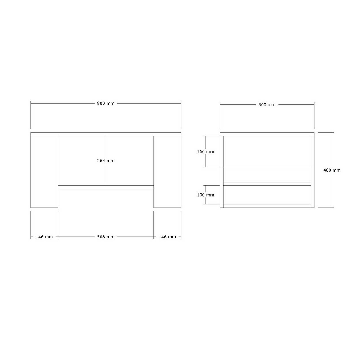 Stolík je vyrobený z melamínom potiahnutej drevotriesky s hrúbkou 18 mm, čo zaisťuje pevnosť a dlhú životnosť. Stabilná konštrukcia poskytuje spoľahlivý povrch na každodenné používanie, zatiaľ čo rozmery 80 × 50 cm spolu s výškou 40 cm ponúkajú dostatok priestoru na servírovanie nápojov, odloženie kníh alebo vystavenie dekorácií.