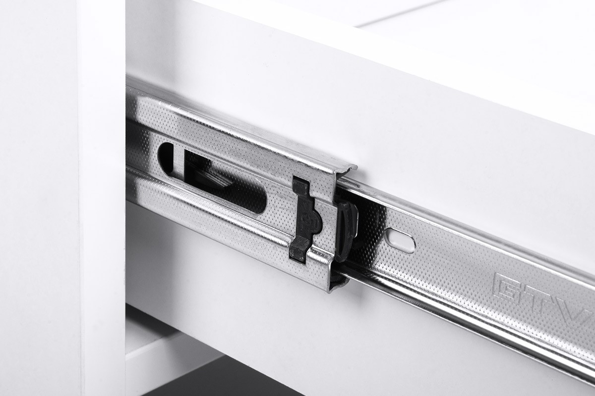 - 45 mm zásuvková ložiská s guličkovými ložiskami. zásuvky majú guličkové hydraulické vedenia, plný výsuv zásuviek