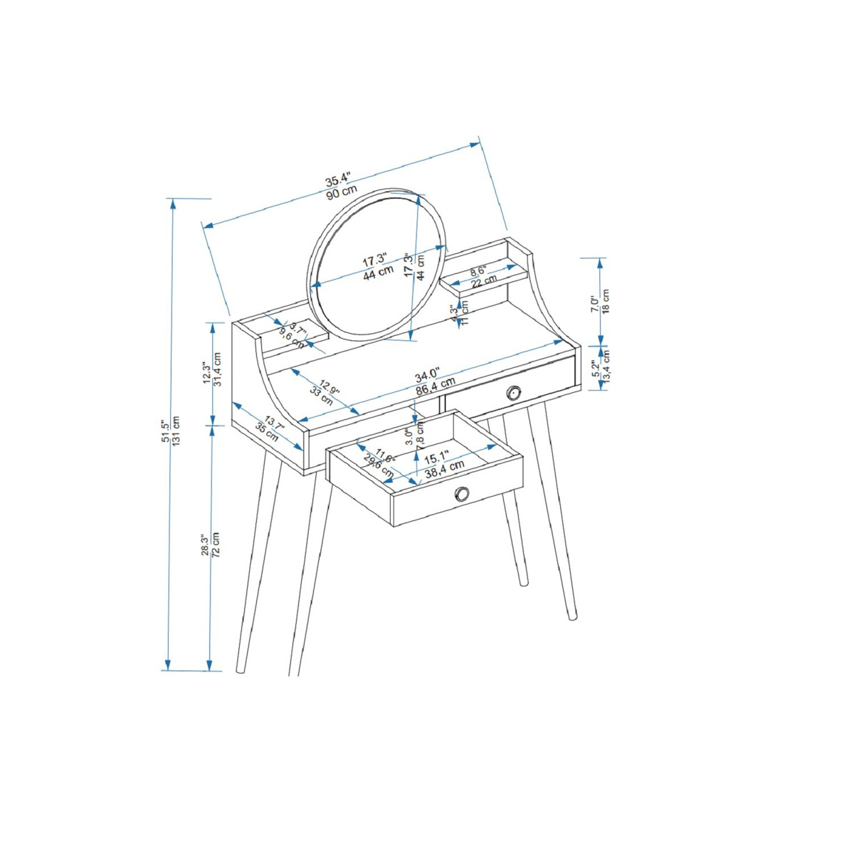 Stolík je vyrobený zo 100% melamínom potiahnutej drevotriesky s hrúbkou 18 mm, ktorá zaisťuje jeho vysokú odolnosť, pevnosť a dlhú životnosť. Vďaka precíznemu spracovaniu poskytuje stabilnú základňu na každodenné líčenie, úpravu účesu či starostlivosť o pleť.