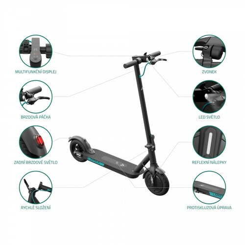 Kam je to pešo ďaleko, tam budete s elektrickou kolobežkou E-Scooter S7500 Plus za pár minút. Dokáže ísť až rýchlosťou 25 km/hodina v dvoch režimoch – eko a športový. Maximálny dojazd na jedno nabitie je 25 km, takže kolobežka môže byť ideálnym dopravným prostriedkom do školy, do práce alebo za zábavou.Na čitateľnom displeji sa vždy zobrazuje dojazd aj stav batérie. Základom bezpečnostného vybavenia je kvalitná brzda s vysokou účinnosťou a varovné LED svetlo, ktoré pri brzdení bliká. Disponuje tiež ochranou proti nechcenému rozjazdu a funkciou tempomatu.Nemusíte mať strach z prepichnutia 8,5″ pneumatiky, pretože je bezdušová a zadné koleso je dokonca odpružené, takže zaistí hladkú jazdu na akomkoľvek povrchu. Pomocou mobilnej aplikácie si kolobežku môžete zamknúť, nastaviť si tempomat, ale tiež môžete kontrolovať dojazd, štatistiky a počet najazdených kilometrov.Vďaka inovovanému systému skladania je kolobežka pevnejšia než kedykoľvek predtým a napriek tomu rýchlo zložiteľná do 3 sekúnd.Rozmery rozloženej kolobežky sú 110 x 43 x 120 cm.Rozmery zloženej kolobežky sú 110 x 43 x 48 cm.Výška riadidiel je 118 cm.Rozmery nášľapu sú 14 x 15 x 61 cm.Doba nabíjania je 4 – 5 hodín.Balenie obsahuje kolobežku, nabíjačku, návod, inbusový kľúč, skrutky.