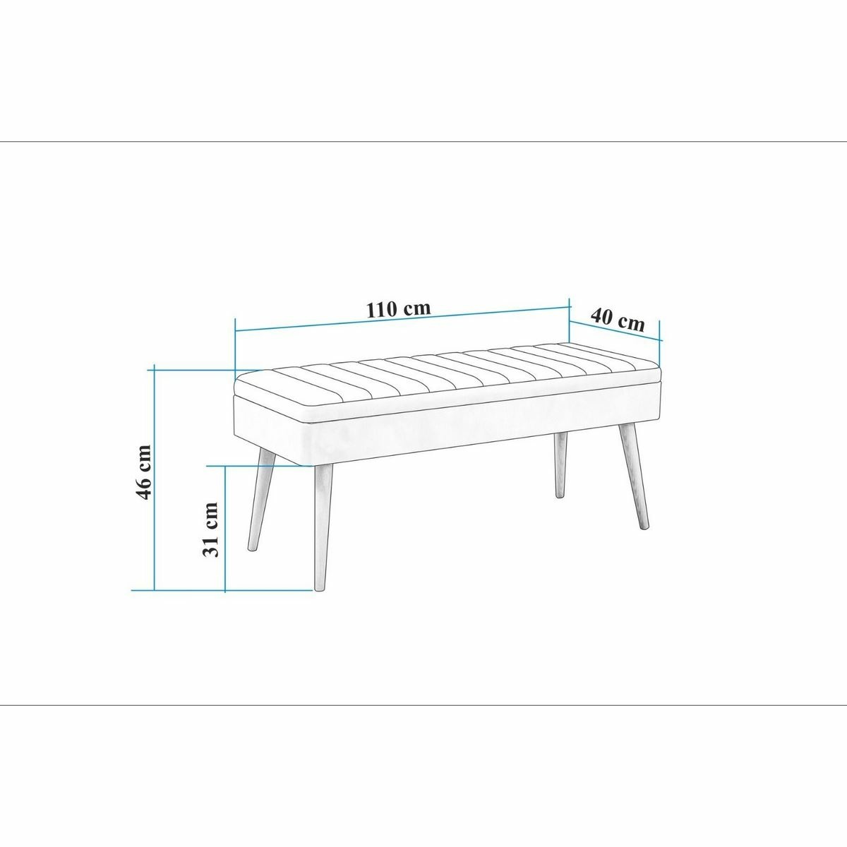 Vďaka svojim rozmerom 110 × 46 × 40 cm je lavica vhodná ako do obývacej izby, tak do spálne alebo predsiene. Môžete ju využiť ako miesto na pohodlné sedenie pri obúvaní, ako doplnkové posedenie pre hostí alebo ako dizajnový prvok, ktorý oživí váš interiér. Jej univerzálny štýl z nej robí nábytok, ktorý sa ľahko kombinuje s ďalším vybavením.