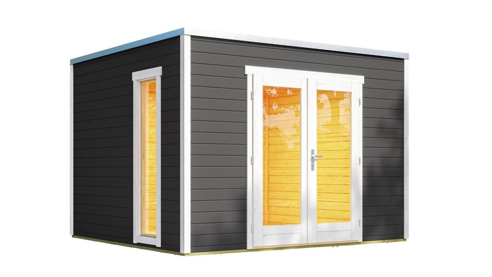 Luxusný drevený záhradný domček P 285 je ideálne miesto na každodenný relax. Tento domček vám dokáže ponúknuť množstvo prírodného svetla, vďaka veľkým panoramatickým preskleným dverám. Okná aj dvere sú presklené od podlahy až po hornú časť dverí. Hliníkový strešný panel dodáva elegentný tvar celému domčeku.