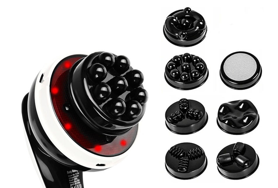 Kvalitný a jedinečný masážny prístroj s infračerveným svetlom pomôže posilniť a vytvarovať zadok, paže, stehná, boky a brucho. Zároveň poskytne komplexnú masáž celého tela, podporí prekrvenie, pomôže uvoľniť svalové napätie a zmierniť bolesti chrbta.Tajomstvo spočíva v krúživom a hnetacom pohybe masážnej hlavice, ktorá napodobňuje pohyby rúk maséra. Masáž sa tak dostane hlboko do vnútorných vrstiev pokožky a intenzívne stimuluje odolné tukové bunky.Používajte 15 minút denne, získajte vysnívanú siluetu a rozlúčte sa s tukovými vankúšikmi. Doprajte si relaxačnú masáž, schudnite a vytvarujte si postavu. Tento prístroj pomôže tiež zbaviť suchej a zrohovatenej kože na pätách, pomocou brúsneho nástavca.Sada obsahuje 8 unikátnych nadstavcov a sieťový kryt na ochranu vlasov pred zamotaním do prístroja.Plochý nadstavec – ideálny pre masáž šije, ramien a chrbta.Vlnitý nadstavec – nepostrádateľný v boji s tukom, ideálny pre oblasť stehien a zadku.Guľôčkový nadstavec – stimuluje a spevňuje svaly a pokožku. Zlepšuje krvný obeh v brušnej oblasti, odstraňuje toxíny a zabraňuje zápche.Nadstavec TaiChi – umožní dosiahnuť svalovú relaxáciu bez pocitu bolesti, uvoľňuje napätie a stav relaxácie obnovuje vnútornú harmóniu.Nadstavec s hladkými valčekmi – rolovanie valčekom je technika, pri ktorej je tlak na pokožku po celú dobu ošetrenia neprerušovaný. Jemným rolovaním hore a dole po chrbte pozdĺž chrbtice sa svaly zahrejú a pripravia na intenzívnejšie, hlbšie masážne techniky.Nadstavec s trojuholníkovými valčekmi – pôsobí proti ochabovaniu, stimuluje prietok krvi, uvoľňuje svalové napätie. Stimuluje krvný a lymfatický obeh.Valčekový nadstavec s guľôčkami- odstraňuje celulitídu odbúravaním tukových buniek a tiež odstraňovaním prebytočnej vody z tela.Peelingový nadstavec – odstraňuje suchú a zrohovatenú pokožku na chodidlách.´Masážny prístroj vám poskytne masáž celého tela. Váš chrbát sa pod vplyvom masáže uvoľní, pomôže od bolesti ramien a krku, zrýchli sa regenerácia natiahnutých svalov. Rozprúdi sa krvný obeh vo vašom tele, pomôže predchádzať kŕčovým žilám a opuchom nôh.Masážny prístroj sa stane vašim pomocníkom v boji proti celulitíde a ovisnutým svalom. Vďaka masáži dôjde k uvoľneniu napätia, zmierni sa stres a zlá nálada.Relaxačnú masáž si doprajte po náročnom dni v práci, tréningu alebo celodennej fyzickej aktivite.Napájanie: 220 – 240VMateriál: ABS