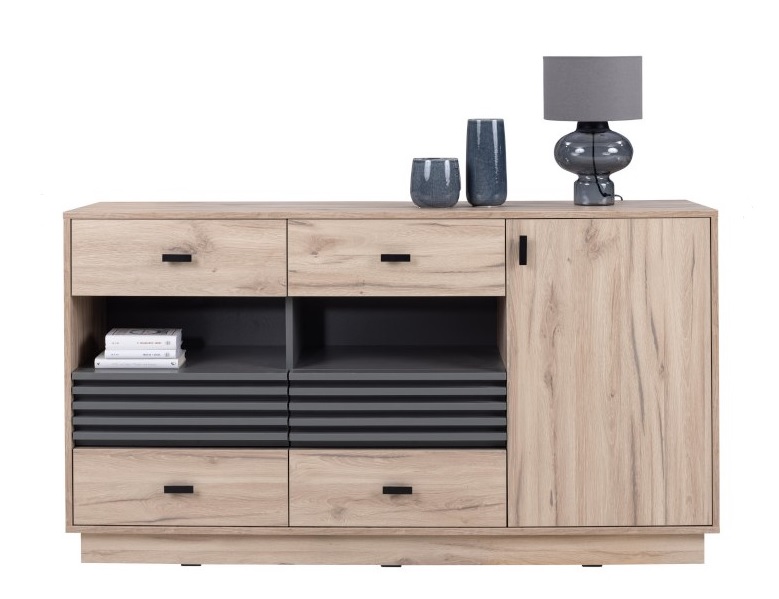 Hľadáte spôsob, ako premeniť svoj domov na útulný a moderný priestor? Komoda ALLMO AL8 v prevedení dub Estana / antracit s lamelami nielen, že vyzerá skvele, ale je aj vyrobená s dôrazom na kvalitu. Tieto dva odtiene dokonale ladia spolu a vytvárajú harmonický celok. Užite si krásny vzhľad, praktickosť a variabilitu komody ALLMO AL8 a urobte z vášho domova priestor, kde sa budete cítiť ako doma. Komoda ALLMO AL8 má jedny dvierka, 6 zásuviek a otvorené police. Komoda ALLMO AL8 má ABS hrany. Dokonale pôsobia na komode ALLMO AL8 čierne úchytky.