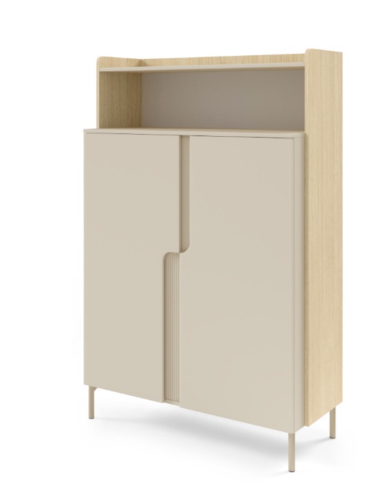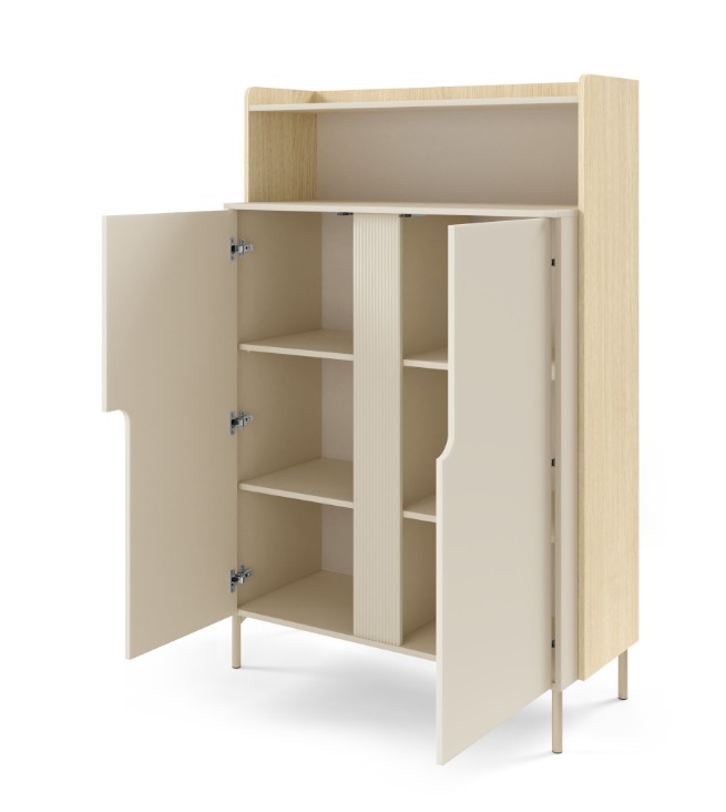 Vysoká komoda POSITANO P04 vo farebnom prevedení dub Mavelie / macadamia predstavuje ideálne spojenie elegancie a praktického úložného priestoru. Vďaka modernému dizajnu pôsobí nadčasovo a ľahko zapadne do rôznych štýlov interiéri od moderného až po klasický. Komoda ponúka dostatok miesta na prehľadné uloženie oblečenia, doplnkov či dekorácií. Precízne spracovanie a dôraz na detail zaručujú vysokú kvalitu a dlhú životnosť. POSITANO tak nie je len praktickým kusom nábytku, ale aj štýlovým doplnkom vášho domova. Komoda je dvojdverová s otvorenou poličkou.
