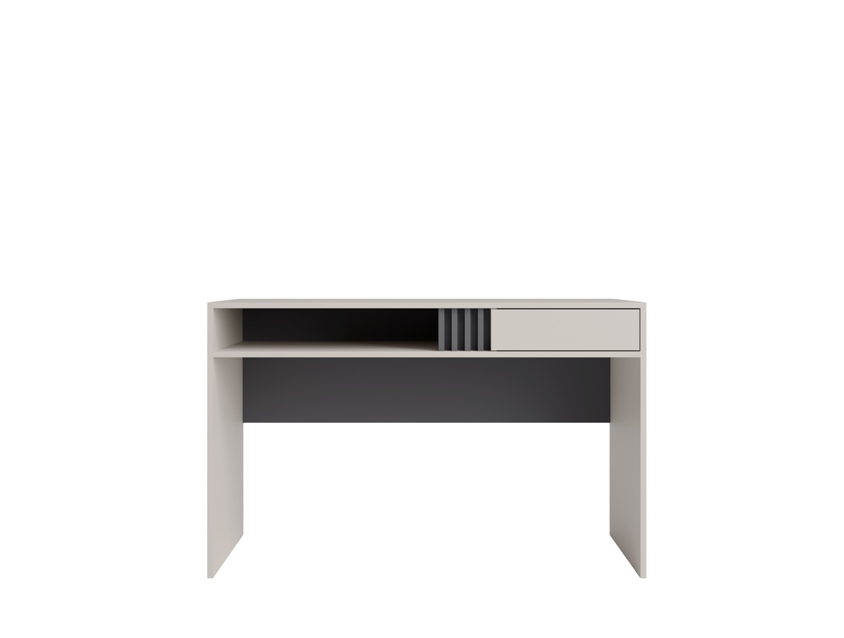 Hľadáte spôsob, ako premeniť svoj domov na útulný a moderný priestor? Písací stolík ALLMO AL9 v prevedení cashmere / antracit s lamelami nielen, že vyzerá skvele, ale je aj vyrobená s dôrazom na kvalitu. Tieto dva odtiene dokonale ladia spolu a vytvárajú harmonický celok. Užite si krásny vzhľad, praktickosť a variabilitu Písacieho stolíka a urobte z vášho domova priestor, kde sa budete cítiť ako doma. Písací stolík ALLMO AL9 má jednu zásuvku a otvorenú policu. K písaciemu stolíku ALLMO AL9 je vhodné doobjednať kontajner ALLMO AL10.