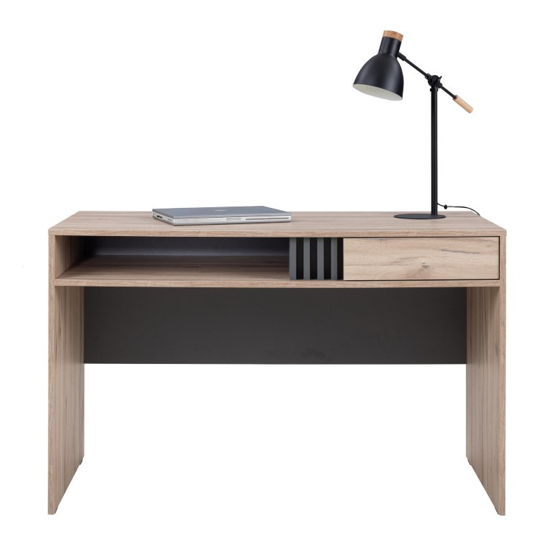 Hľadáte spôsob, ako premeniť svoj domov na útulný a moderný priestor? Písací stolík ALLMO AL9 v prevedení dub Estana / antracit s lamelami nielen, že vyzerá skvele, ale je aj vyrobená s dôrazom na kvalitu. Tieto dva odtiene dokonale ladia spolu a vytvárajú harmonický celok. Užite si krásny vzhľad, praktickosť a variabilitu Písacieho stolíka ALLMO AL9 a urobte z vášho domova priestor, kde sa budete cítiť ako doma. Písací stolík ALLMO AL9 má jednu zásuvku a otvorenú policu. Písací stolík ALLMO AL9 má ABS hrany. K písaciemu stolíku ALLMO AL9 je vhodné doobjednať kontajner ALLMO AL10.