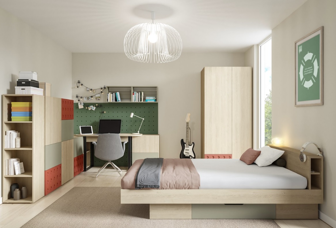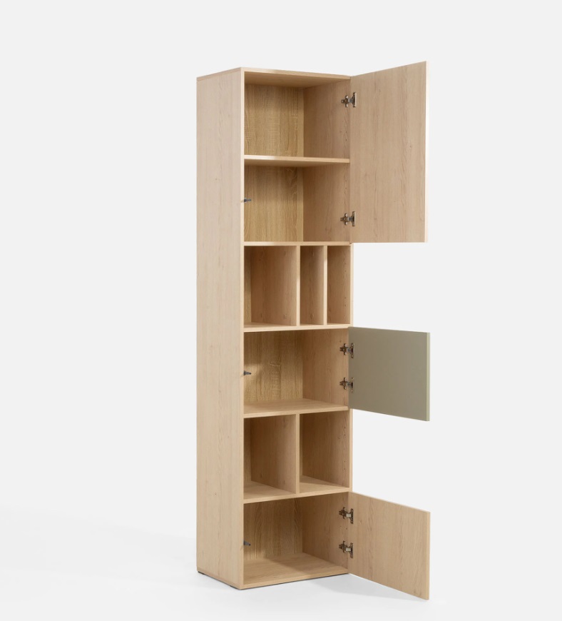 Regál SALSA SL3 spája prírodný vzhľad dreva so sviežou eukalyptovou farbou, čo pôsobí energicky a originálne. Vďaka modulárnosti nábytku SALSA dokonale zapadne do rôznych typov izieb a podporuje každodenný poriadok, ktorý vydrží. Regál je priestranný so skrinkami a policami, otvorenie je systémom klik-klak, bez úchytiek.