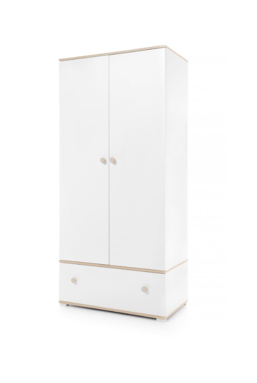 Šatníková skriňa ZOYA ZY01 je praktický a štýlový kus nábytku vhodný do každej detskej izby. Nábytok je navrhnutý pre najmenších s dôrazom na bezpečnosť, kvalitné spracovanie a nadčasový vzhľad. Systém ponúka čistý, jednoduchý dizajn, ktorý rastie spolu s dieťaťom. Vďaka minimalistickému štýlu môžete izbu jednoducho meniť pomocou dekorácií, napríklad samolepkami. Nábytok je vyrobený v bielej farbe s prírodným dreveným dekorom, takže pôsobí moderne a útulne. Šatníková skriňa ponúka veľa úložného priestoru, má priestrannú zásuvku, policu a vešiakovú tyč. Oblečenie, hračky či knihy tak budú vždy upratané a poruke. Jednoduchý dizajn umožňuje ľahké kombinovanie s ďalším nábytkom.