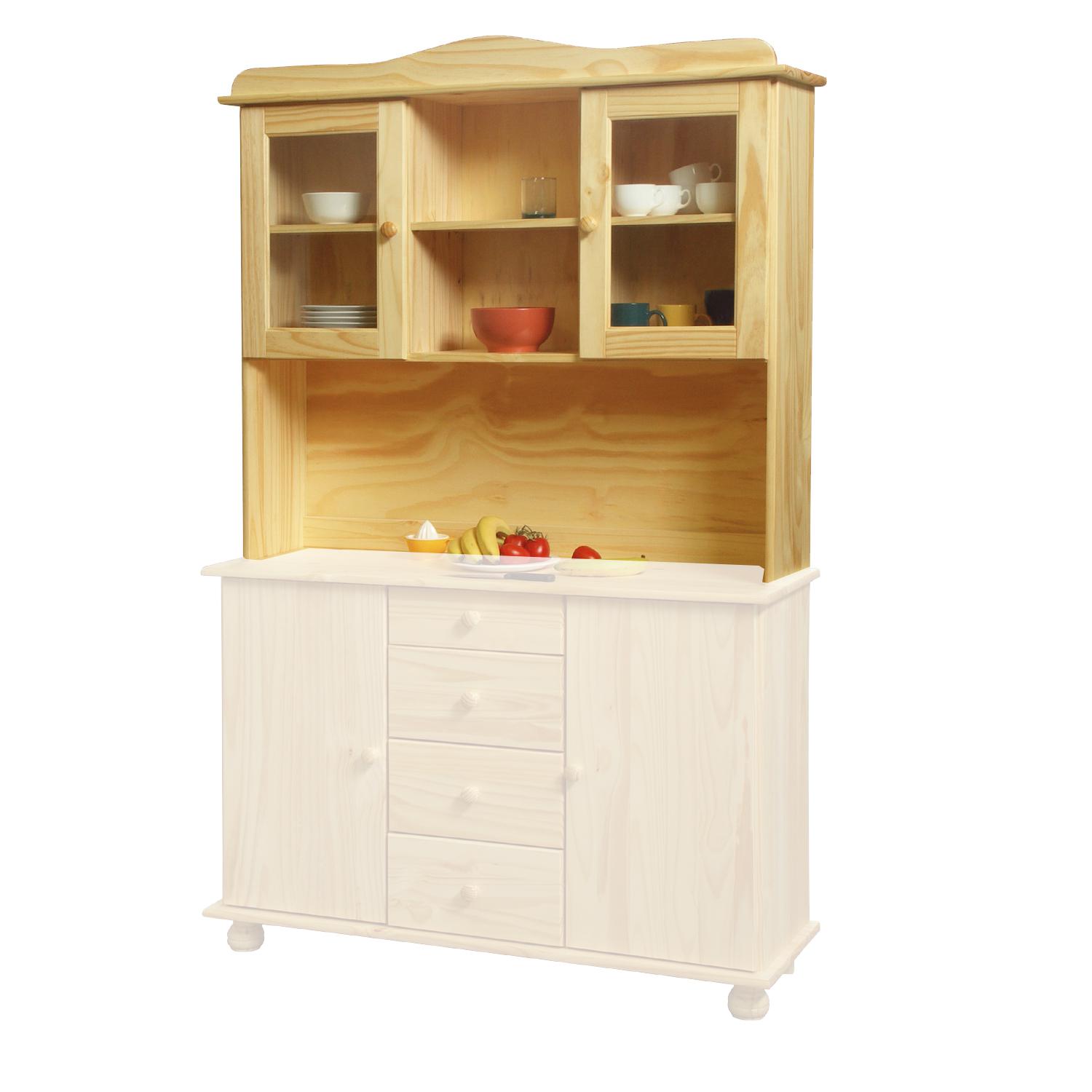Nadstavec príborníka 8046 v prevedení masív borovica lak je doplnkom príborníka 8045. Nadstavec obsahuje dvoje presklené dvierka, za ktorými sa nachádzajú police, v prostrednej časti je voľný priestor s policou. Masívny nadstavec okamžite oživí jedáleň, vystavíte doň obľúbené dekorácie.