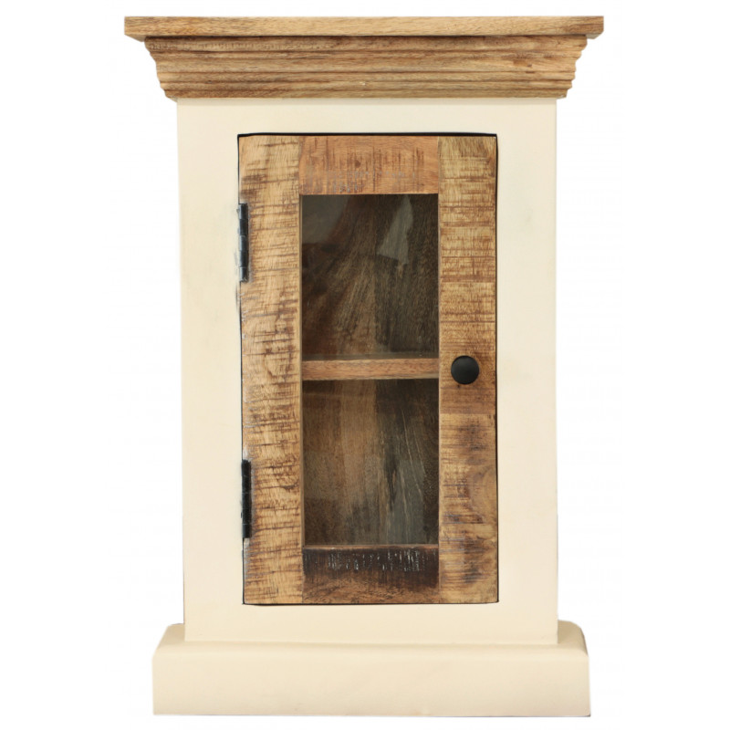 Nástenná skrinka do kúpeľne z masívu Agni je vyrobená z kvalitného masívneho mangového dreva vo vidieckom štýle.Nástenná skrinka do kúpeľne je vyrobená z masívu mango. Obsahuje presklené dvierka a vnútri poličky. Nástenné skrinky do kúpeľne z masívu, ktoré máme na skladom, si môžete pozrieť v našom showroome. Indický koloniálny nábytok mango masív.