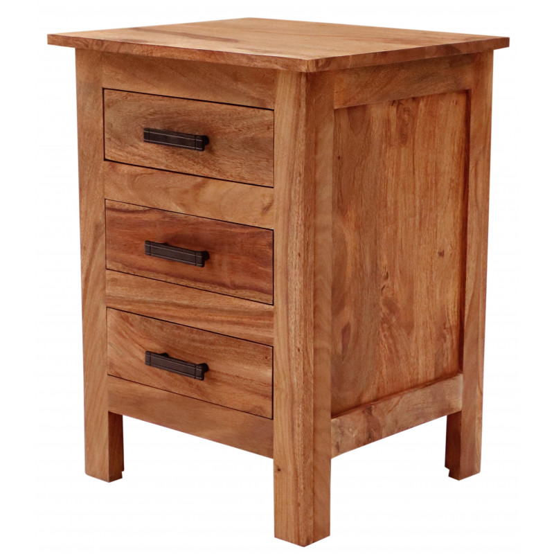 Nočný stolík Rami z masívu palisandru je výrobným dielom z kvalitného masívneho palisandrového dreva, s tromi priestrannými zásuvkami zdobenými kovovými madlami. Tento nábytok nie je len praktickým doplnkom, ale aj umeleckým dielom. Jeho unikátny dizajn a exotický charakter robia z tohto nočného stolíka špeciálny kúsok nábytku, ktorý osvieži vašu spálňu a poskytne dostatok úložného priestoru pre vaše osobné veci. Choďte ďalej než len k stolíku – vyberte si Rami nočný stolík a pridajte do svojej spálne kúsok Indie.Nočný stolík z masívu je vyrobený z indického palisandru. Obsahuje tri zásuvky. Nočné stolíky z masívu, ktoré máme skladom, si môžete pozrieť v našom showroome. Indický koloniálny nábytok palisander (Sheesham) masív.