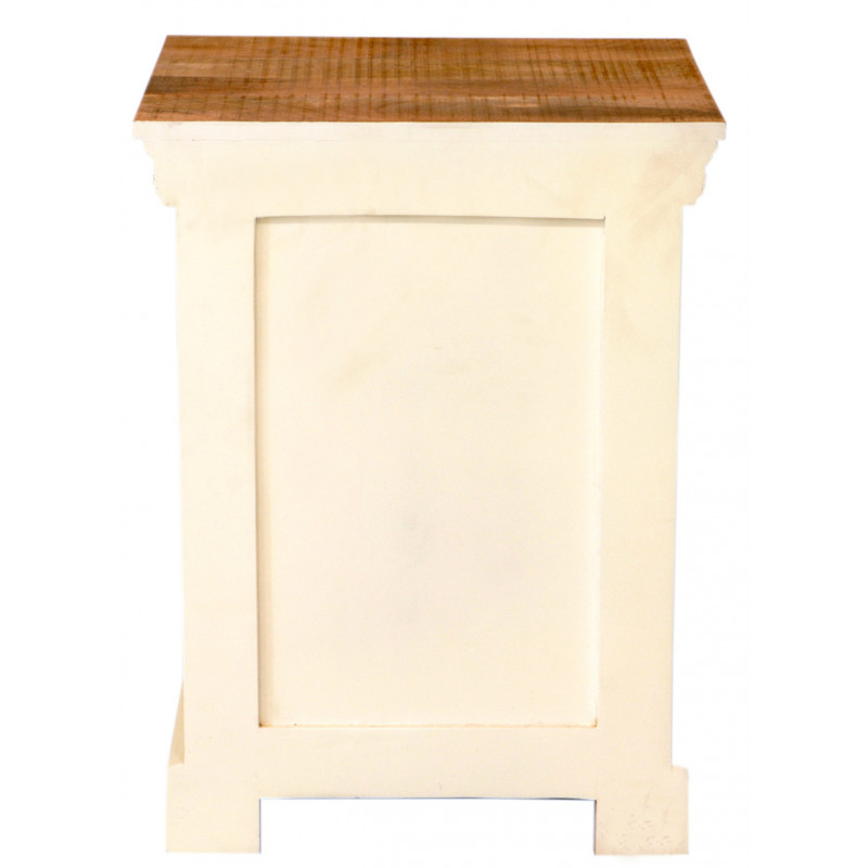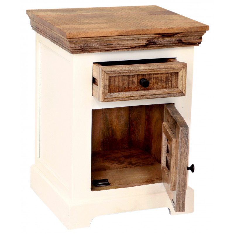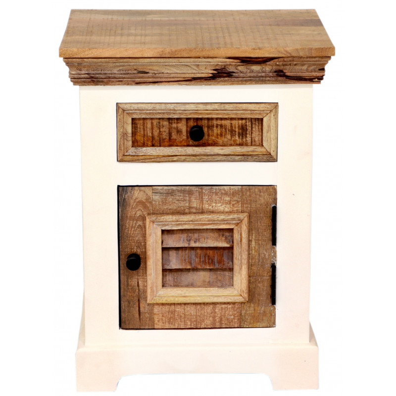 Nočný stolík z masívu z kolekcie Agni je vytvorený z kvalitného masívneho mangového dreva, a jeho výnimočný vidiecky štýl vyniká osobitou farebnou kombináciou. Stolík ponúka jednu mešiu zásuvku a dvere z masívu palisander, ktoré dodávajú tomuto kúsku charakter. Jeho dizajn nie je len praktický, ale aj umelecký, čo ho robí výborným doplnkom pre vašu spálňu. S nočnými stolíkmi zo série Agni z masívu mangového dreva prinesiete do svojho domova nádych exotiky a osobitosti.Nočný stolík má jedny dvierka a hornú zásuvku. Vyrobené z masívu mango. Nočné stolíky, ktoré máme na skladom, si môžete pozrieť v našom showroome. Indický koloniálny nábytok mango masív.