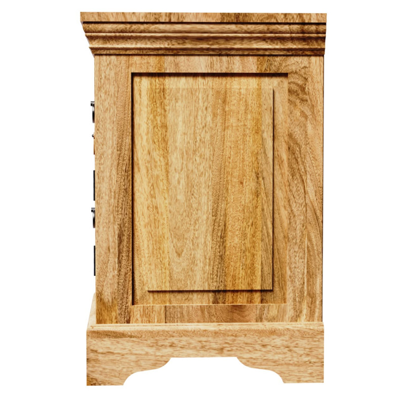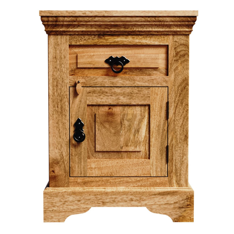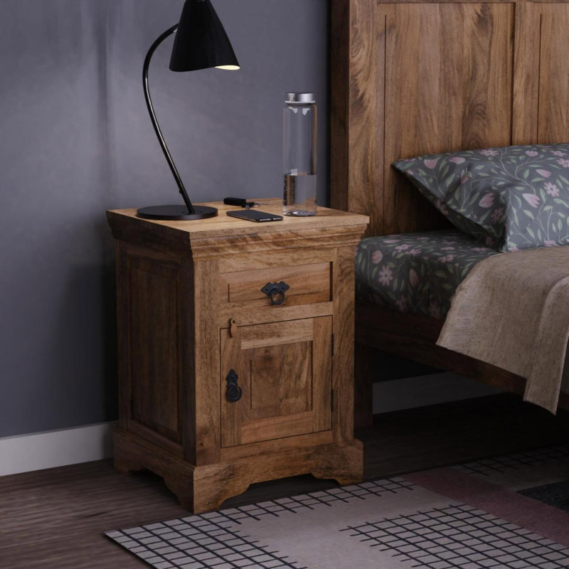 Nočný stolík Guru z masívu je ručne vyrobený z vysokokvalitného mangového dreva. Jeho jedinečný dizajn a detaily sú ohromujúce. Stolík ponúka 1 širokú zásuvku a dvierka so štýlovým odkladacím priestorom, ktorý je ideálny na uchovávanie kníh, časopisov alebo osobných vecí. Tento kus indického nábytku je nielen praktickým doplnkom, ale aj umeleckým dielom, ktoré prinesie do vášho domova kus exotiky a elegancie. Investujte do nášho nočného stolíka Guru a premeňte svoju spálňu na miesto pohodlia a krásy.Nočný stolík má 1 zásuvku a 1 dvierka, je vyrobený z indického manga. Nočné stolíky, ktoré máme na skladom, si môžete pozrieť v našom showroome. Indický koloniálny nábytok mango masív.