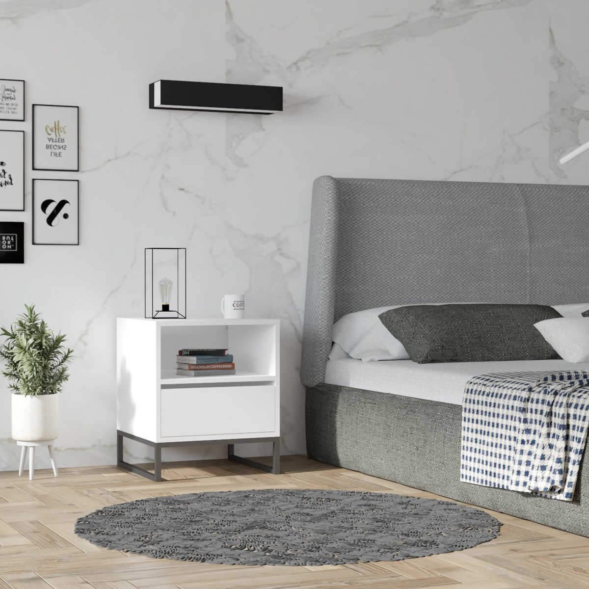 Vďaka svojmu modernému a čistému dizajnu je tento nočný stolík ideálnym doplnkom každého interiéru, ktorý kladie dôraz na štýl, jednoduchosť a funkčnosť. Skvele zapadne do moderných spální aj do priestorov inšpirovaných škandinávskou estetikou.Vylepšite svoju spálňu nadčasovou krásouStôl je vyrobený zo 100% melamínom potiahnutej drevotriesky a vyniká svojou pevnosťou a odolnosťou. Hrúbka dosky 18 mm zaisťuje dlhú životnosť a stabilitu aj pri každodennom používaní. Vďaka precíznemu spracovaniu sa môžete spoľahnúť na jeho funkčnosť aj elegantný vzhľad po mnoho rokov.Estetická príťažlivosť, ktorá prekračuje hraniceMinimalistický dizajn s dôrazom na čisté línie umožňuje ľahké začlenenie do najrôznejších typov interiérov. Či už chcete vytvoriť modernú hotelovú atmosféru alebo útulné a pokojné prostredie, tento nočný stolík sa stane vizuálne príjemným a zároveň praktickým prvkom vašej spálne.Vytvorte si pokojné útočisko s funkčným dizajnomRozmery 51 × 61 × 51 cm poskytujú dostatok priestoru pre nočnú lampu, knihy, telefón alebo iné drobnosti. Horná doska aj prípadný úložný priestor prispievajú k upravenému prostrediu. Biela farba podčiarkuje čistotu a pokoj celkového dizajnu a podporuje relaxačnú atmosféru v miestnosti.Technické detaily: