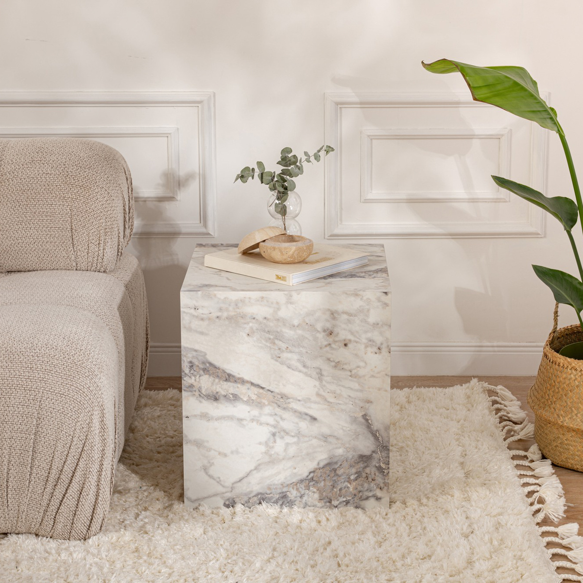 Odkladací stolík je vyrobený zo 100% MDF, a tak ponúka nielen vizuálnu príťažlivosť, ale aj odolnosť a dlhú životnosť. Hrúbka materiálu 18 mm zaisťuje pevnosť a stabilitu, zatiaľ čo rozmery 45 × 50 × 45 cm z neho robia ideálny doplnok do každej miestnosti.