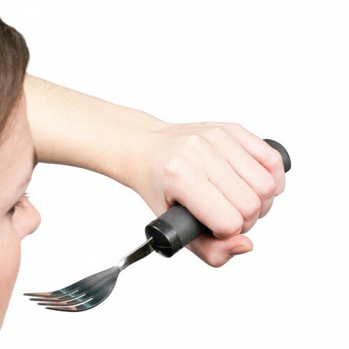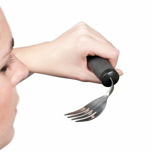 Ak nemôžete kvôli fyzickému nepohodliu ohnúť či zatočiť zápästie, je veľmi ťažké jesť samostatne. Keď máte zhoršené jemné motorické zručnosti, je veľmi ťažké uchopiť štandardné príbory. Obmedzuje to vašu nezávislosť a potrebujete pomôcť s jedlom.Aby ste to zvládli samostatne, máme pre vás VITILITY zahnutú vidličku. Vidlička je súčasťou ohybnej sady príborov. Sada sa skladá z vidličky, lyžice, lyžičky a noža. Nôž samozrejme nie je ohýbateľný, ale má rovnako širokú protišmykovú rukoväť pre jeho lepšie uchopenie.Vďaka zahnutému tvaru vidličky nemusíte ohýbať ani vykrúcať zápästie, aby ste preniesli jedlo z taniera k ústam. Zosilnená protišmyková rukoväť môže byť ohnutá doprava alebo doľava, vidlička je tak vhodná pre pravákov aj ľavákov. Odporúčame ju ohnúť len raz – nájdite požadovanú pozíciu a nechajte ju tam. Pri častejšom ohýbaní sa rukoväť stáva zraniteľnejšou a môže sa ľahšie zlomiť.
