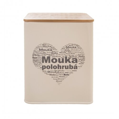 Dizajnová hranatá plechová dóza so štýlovým nápisom Polohrubá múka v tvare srdca pre uskladnenie polohrubej pšeničnej múky, vhodná napr. na prípravu domácich rezancov, knedlí alebo halušiek. Tejto smotanovej dóze sa jednoducho nedá odolať.Pohodlne sa do nej vojde celé balenie múky, bambusové viečko so silikónovým tesnením ju uzavrie, zamedzí tak zvlhnutiu a ochráni obsah pred hmyzom. Navyše sa odporúča skladovať múku v suchu a tme, takže aj na kuchynskej linke máte istotu, že bude jej kvalita zachovaná.Stane sa nielen praktickou nádobou na uloženie sypkých potravín, ale aj štýlovým kúskom, ktorý zútulní interiér kuchyne.