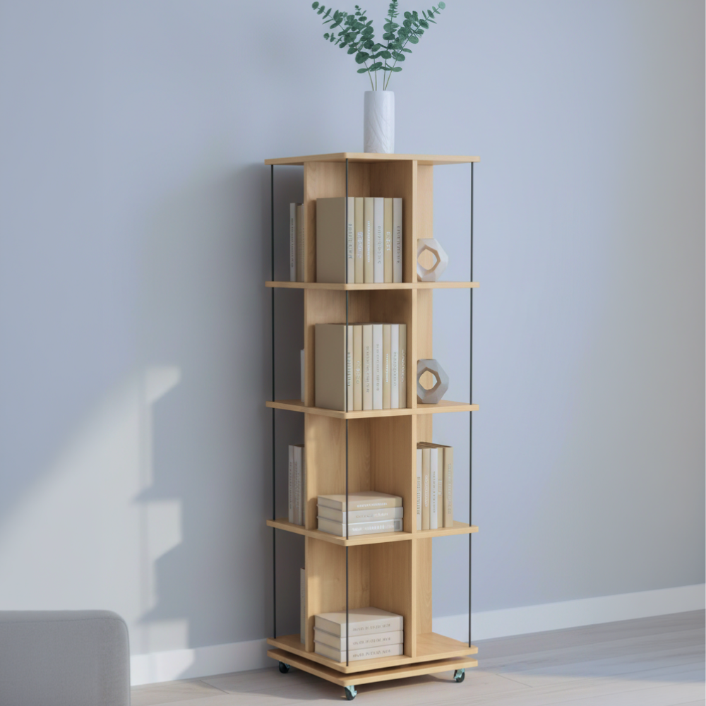 Regál je otočný o 360°, takže sa ku všetkým policiam dostanete rýchlo a pohodlne. Všetky poschodia sa otáčajú súčasne jedným smerom, čo vytvára zaujímavý a funkčný prvok pri každodennom používaní.