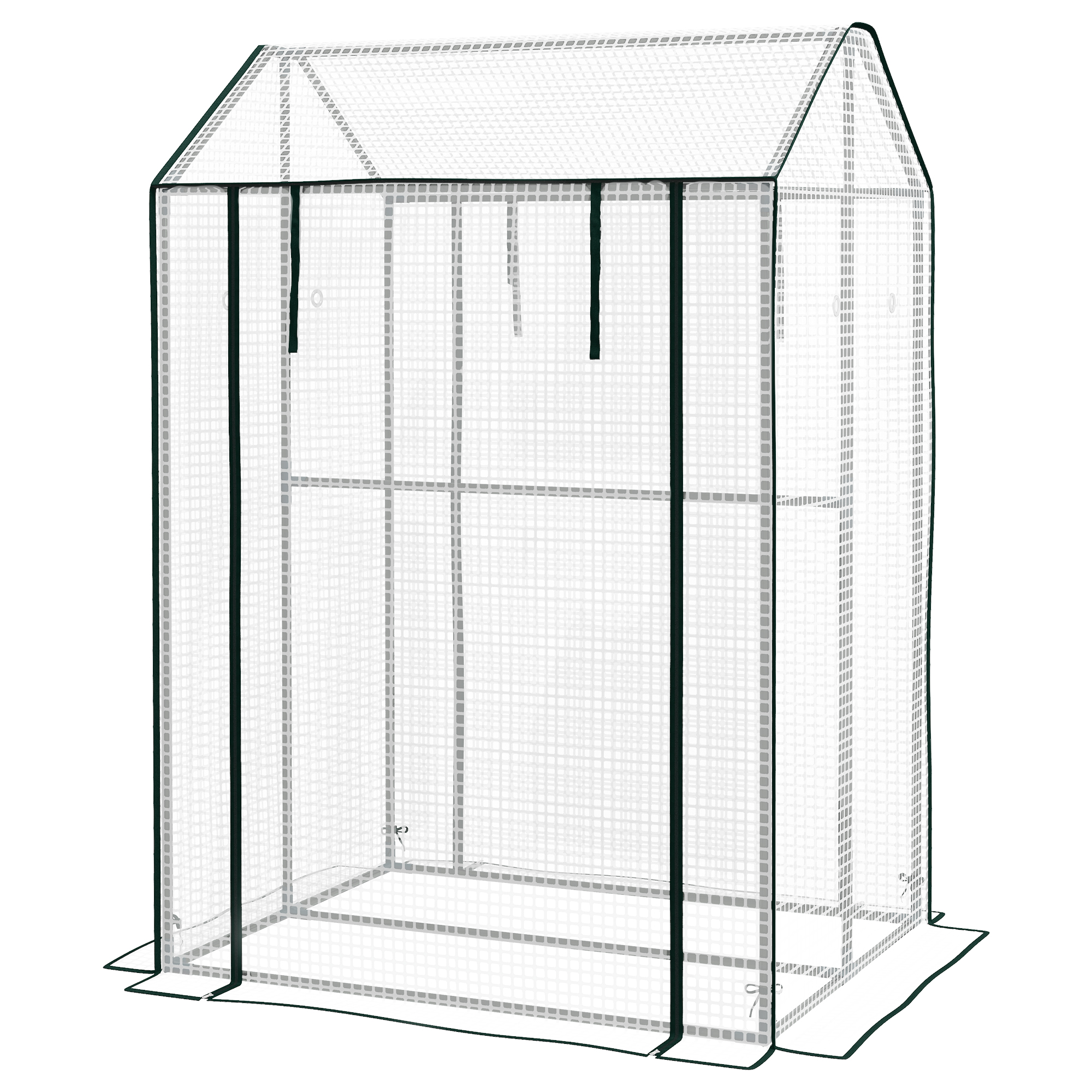 S obojstrannou listovou fóliou od spoločnosti Outsunny už nie je záhradkárčenie zakázané. Vďaka robustnému oceľovému rámu a plastovému krytu odolnému voči UV žiareniu majú vaše rastliny chránené miesto pre optimálny rast. Kryt zároveň umožňuje rastlinám prijímať slnečné svetlo. Okrem toho rolovacie dvere umožňujú jednoduchý prístup do prenosného skleníka, zatiaľ čo vetracie otvory zabezpečujú prívod čerstvého vzduchu.