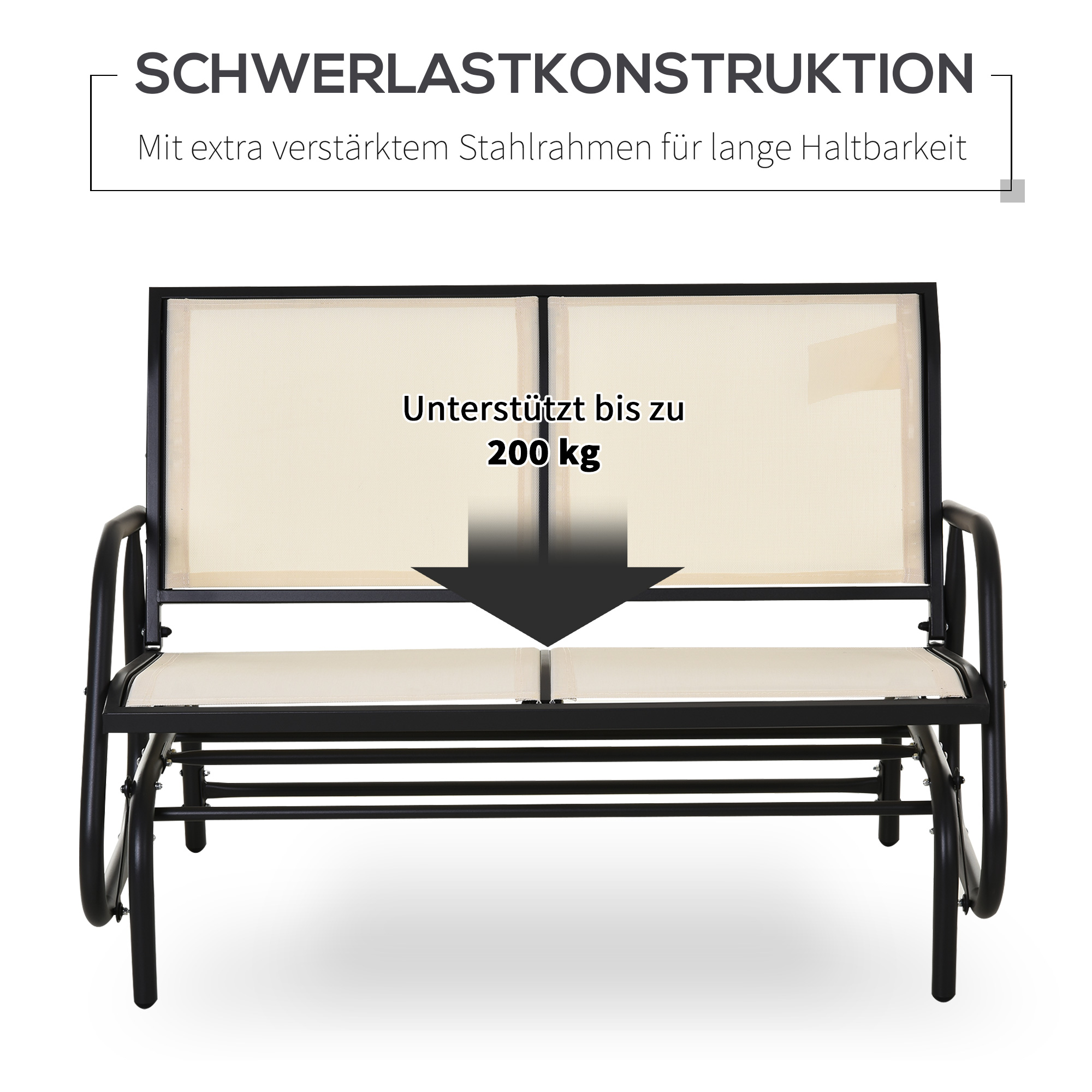 OUTSUNNY Hojdacia dvojmiestna záhradná lavica 120 x 70 x 85 cm čierna, béžová