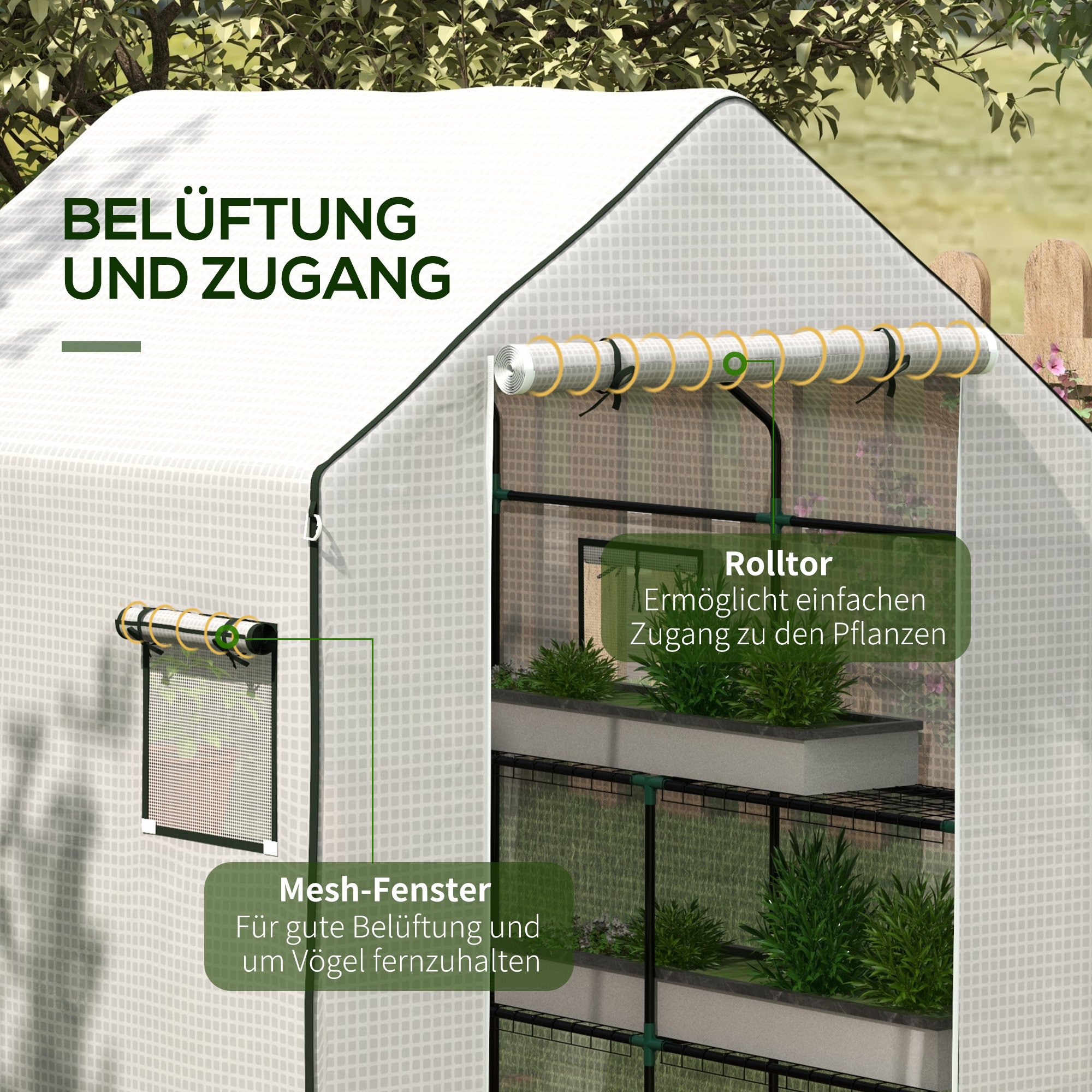 OUTSUNNY Fóliovník s rolovacími dvierkami 200 x 170 x 76 cm biely
