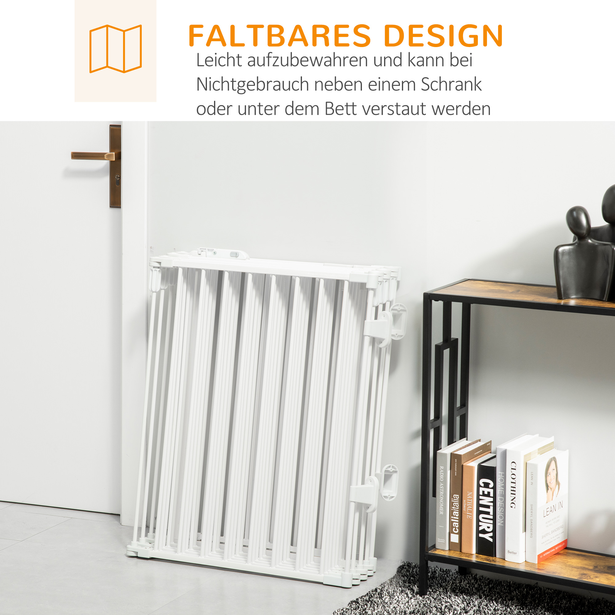 Skladacia konštrukcia umožňuje jednoduché skladovanie dvierok. Keď sa nepoužívajú, možno ich umiestniť vedľa skrine alebo pod posteľ.