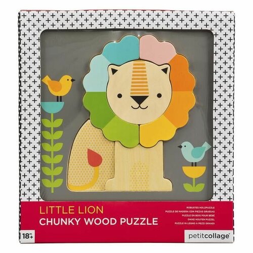Postavte si priateľského leva s veselou dúhovou hrivou s týmto dreveným logom Little Lion Chunky od Petit Collage! Malé deti môžu ľahko uchopiť päť robustných drevených kúskov a vytvoriť tak svojho malého levieho kamaráta na farebnej scéne. Pre deti od 18 mesiacov.Hlavné vlastnosti: