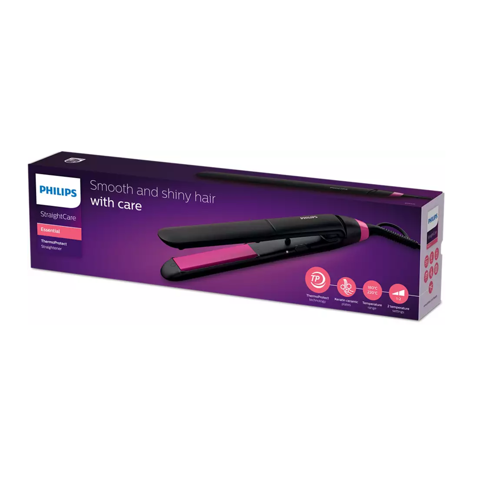 Táto žehlička bola navrhnutá špeciálne pre jednoduchú a rýchlu úpravu účesu pomocou dlhých doštičiek napustených keratínom a 2 nastavení teploty. Starajte sa skvele o svoje vlasy s technológiou ThermoProtect zabraňujúcou prehriatiu.Technológia ThermoProtect rovnomerne distribuuje teplo do doštičiek a zabraňuje tak prehrievaniu, čím chráni vaše vlasy. Keramické doštičky napustené keratínom hladko kĺžu po vlasoch a umožňujú rýchly a jednoduchý styling. Rozsah teplôt je až do 220 °C a zaisťuje dlhodobé výsledky, súčasne minimalizuje nebezpečenstvo poškodenia vlasov. Dlhšie 100 mm doštičky umožňujú lepší kontakt s vlasmi a pomáhajú dosiahnuť dokonalé vyrovnanie ľahšie a za kratšiu dobu. Je možné ich tiež uzamknúť k sebe, aby sa dali bezpečne a jednoducho skladovať.Žehlička disponuje 2 nastaveniami teploty. Nižšia teplota slúži na rýchle doladenie účesu a jemnú úpravu, vyššia teplota zaistí dlhotrvajúce výsledky. Zároveň je pripravená na použitie iba za 60 sekúnd.Napätie – 110-240 VRozmery doštičky: 28 x 10 cm