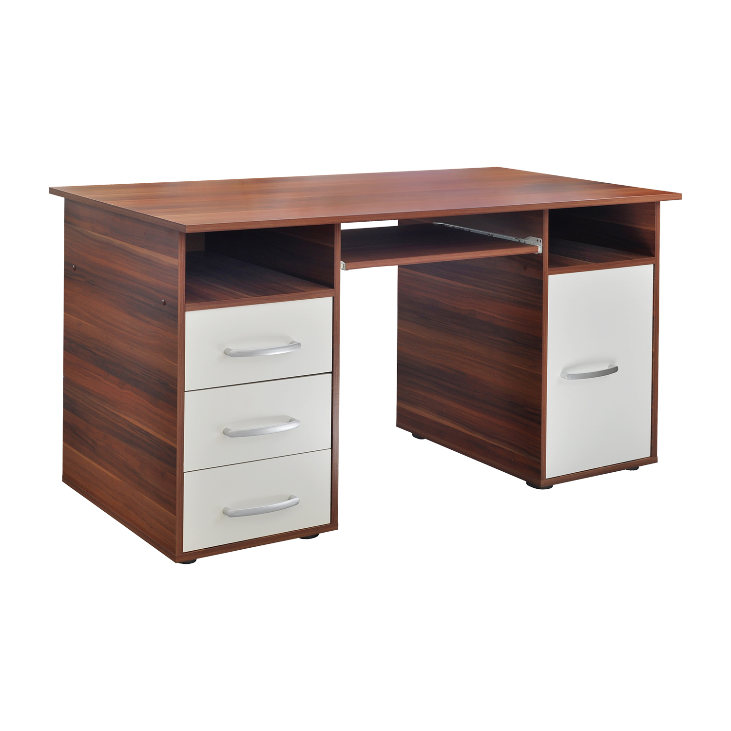 Písací stôl 60194 vo farebnom prevedení orech / biela sa bude hodiť do každého pracovného kúta, poskytne vám totiž nielen veľkorysú plochu na prácu, ale predovšetkým šikovný úložný priestor. Veľký písací stôl obsahuje tri zásuvky a skrinku s dvierkami, v ktorej sa nachádza variabilná polica. Do zásuviek uložíte najrôznejšie dokumenty aj drobné kancelárske potreby, do skrinky potom uložíte učebnice a knihy. Písací stôl vo farebnom prevedení orech / biela najlepšie zapadne do kancelárie, pracovne či študentskej izby zariadenej práve nábytkom v prevedení orech / biela. Stôl má možnosť montáže výsuvu pre klávesnicu, ktorý je súčasťou dodávky. Pracujte za veľkým písacím stolom a majte všetko poruke, práca a učenie potom bude radosť.