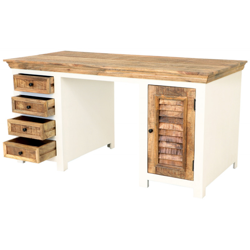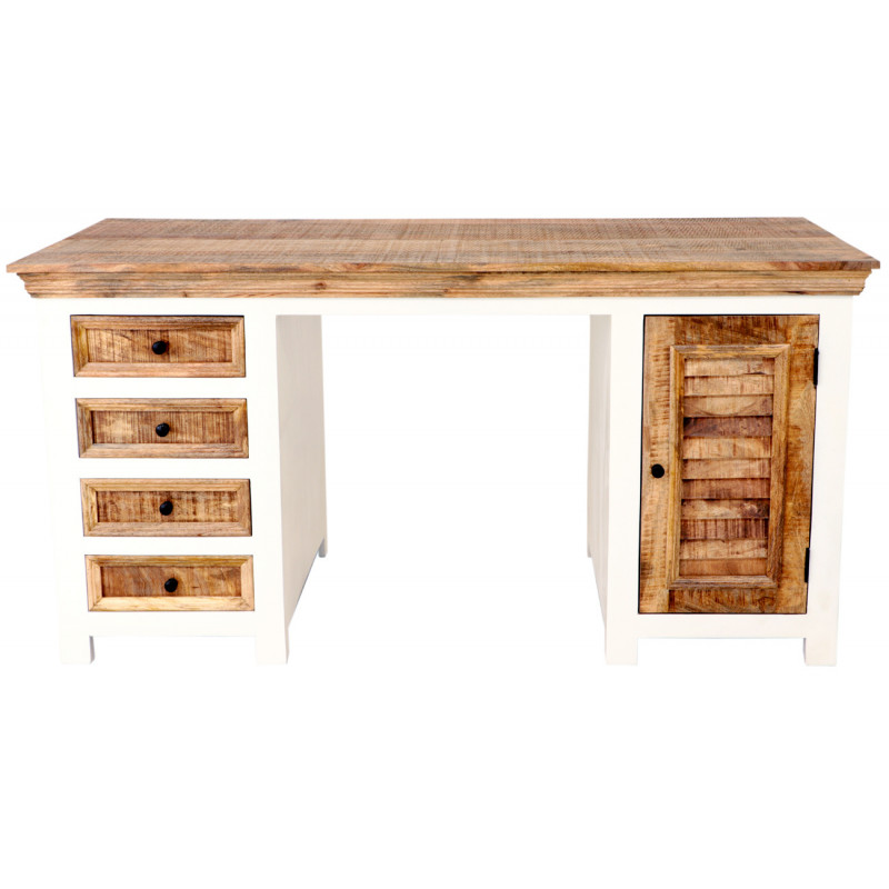Písací stôl z masívu Agni je vyrobený z kvalitného masívného mangového dreva vo vidieckom štýle.Písací stôl má štyri zásuvky a jedny dvierka s úložným priestorom. Vyrobený z o masívu mango. Písacie stoly z masívu, ktoré máme na skladom, si môžete pozrieť v našom showroome. Indický koloniálny nábytok mango masív.