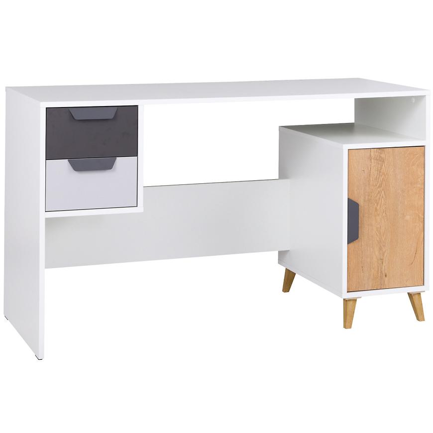 Písací stôl Joker 13 Biely/Grafit/Šedá/Dub Lefkas