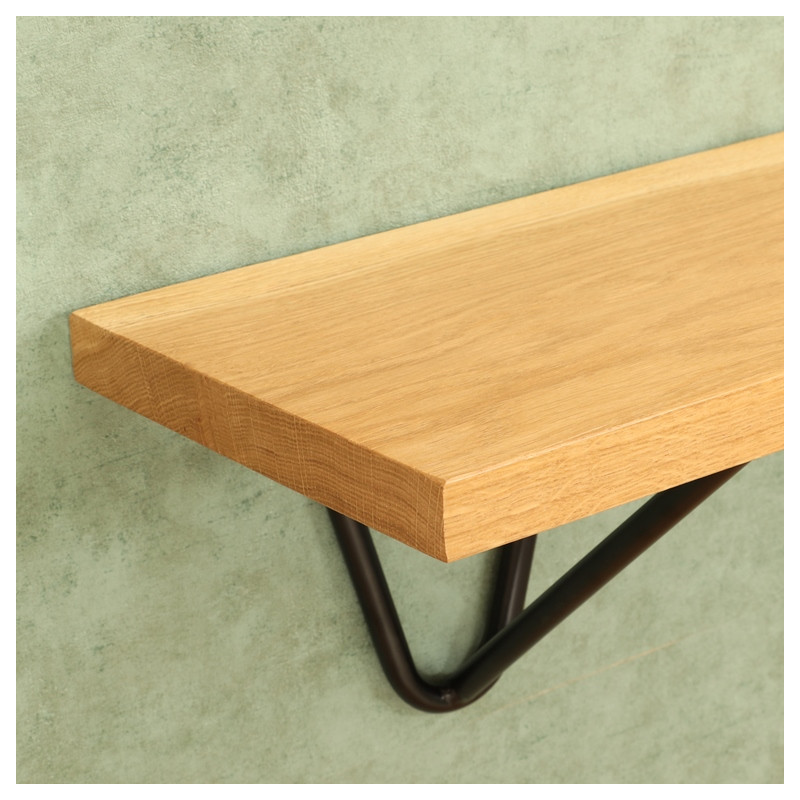 Police na stenu s ocelovými konzolami DINA. Výška konzoly 21 cm, hrúbka masívneho dreva 2,5 cm, hĺbka poličky 21 cm.Táto moderná nástenná polica je skvelým doplnkom každého interiéru, ktorý spája prírodnú krásu masívneho dreva s industriálnym nádychom čiernych oceľových konzol. Police na stenu ponúkame vo veľkostiach 50 cm, 75 cm, 100 cm, 125 cm a 150 cm, pričom výška každej konzoly je 21 cm a hrúbka dreva je 2,5 cm.Polica je dostupná v krásnych masívnych drevinách buk, dub, mango a palisander, ktoré dodajú vášmu priestoru teplý a prírodný vzhľad. Súčasťou balenia sú dve robustné oceľové konzoly v čiernej farbe, ktoré nielen zaisťujú stabilitu, ale taktiež pridávajú industriálny prvok do vášho domova. Spojenie masívneho dreva a čiernych konzol vytvára v interiéri elegantnú a modernú atmosféru, ktorá osloví milovníkov kvalitného a nadčasového dizajnu.Táto drevená polica je ideálnou voľbou na umiestnenie kníh, dekorácií alebo iných drobných predmetov a ponúka praktické, štýlové riešenie pre vašu domácnosť.Police na mieru:Cena atypickej police na mieru sa vypočítava na základe najbližšieho vyššieho štandardného rozmeru. K cene tohto rozmeru sa pripočítava príplatok vo výške 15 % z celkovej ceny.Súčasťou balenia je univerzálny inštalačný materiál na montáž.