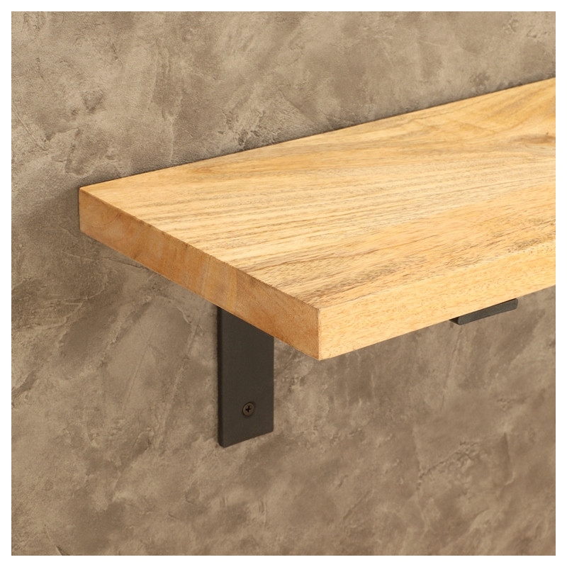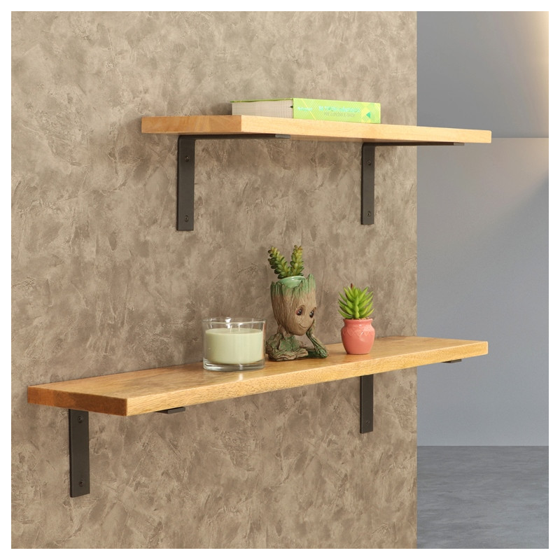 Police na stenu s oceľovými konzolami Lada. Výška konzoly 18,5 cm, sila masívneho dreva 2,5 cm, hĺbka poličky 21 cm.Dizajnová nástenná polica z masívu s kovovými konzolami.Táto elegantná nástenná polica v sebe spája prirodzený vzhľad masívneho dreva s moderným industriálnym štýlom čiernych kovových konzol. Vyrába sa v rôznych dĺžkach – 50 cm, 75 cm, 100 cm, 125 cm a 150 cm. Výška konzol je 18,5 cm a polica samotná má hrúbku 2,5 cm.Na výber sú štyri typy drevín – buk, dub, mango a palisander – ktoré dodajú interiéru prírodné teplo a osobitý charakter. Čierne oceľové držiaky zaisťujú pevné uchytenie a zároveň podčiarkujú moderný, ľahko industriálny vzhľad. Kombinácia kvalitného dreva a kovu pôsobí nadčasovo a štýlovo.Police sa skvele hodia na vystavenie kníh, dekorácií alebo iných drobných predmetov. Je to praktický aj estetický doplnok, ktorý obohatí každý domov.Police na mieru:Cena atypickej police na mieru sa vypočítava na základe najbližšieho vyššieho štandardného rozmeru. K cene tohto rozmeru sa pripočítava príplatok vo výške 15 % z celkovej ceny.Súčasťou balenia je univerzálny inštalačný materiál na montáž.