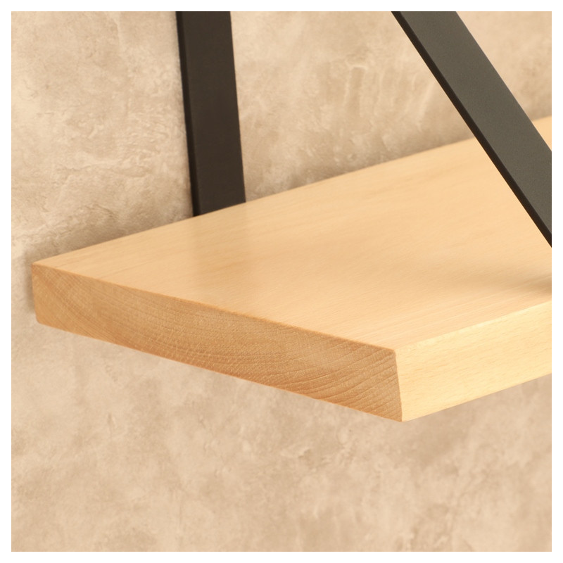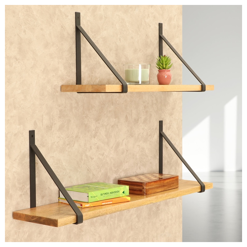 Police na stenu s oceľovými konzolami Mila. Výška konzoly 30 cm, hrúbka masívneho dreva 2,5 cm, hĺbka poličky 21 cm.Táto moderná nástenná polica je skvelým doplnkom každého interiéru, ktorý spája prírodnú krásu masívneho dreva s industriálnym nádychom čiernych oceľových konzol. Police na stenu ponúkame vo veľkostiach 50 cm, 75 cm, 100 cm, 125 cm a 150 cm, pričom výška každej konzoly je 22,5 cm a hrúbka dreva je 2,5 cm.Polica je dostupná v krásnych masívnych drevinách buk, dub, mango a palisander, ktoré dodajú vášmu priestoru teplý a prírodný vzhľad. Súčasťou balenia sú dve robustné oceľové konzoly v čiernej farbe, ktoré nielen zaisťujú stabilitu, ale taktiež pridávajú industriálny prvok do vášho domova. Spojenie masívneho dreva a čiernych konzol vytvára v interiéri elegantnú a modernú atmosféru, ktorá osloví milovníkov kvalitného a nadčasového dizajnu.Táto drevená polica je ideálnou voľbou na umiestnenie kníh, dekorácií alebo iných drobných predmetov a ponúka praktické, štýlové riešenie pre vašu domácnosť.Police na mieru:Cena atypickej police na mieru sa vypočítava na základe najbližšieho vyššieho štandardného rozmeru. K cene tohto rozmeru sa pripočítava príplatok vo výške 15 % z celkovej ceny.Súčasťou balenia je univerzálny inštalačný materiál na montáž.