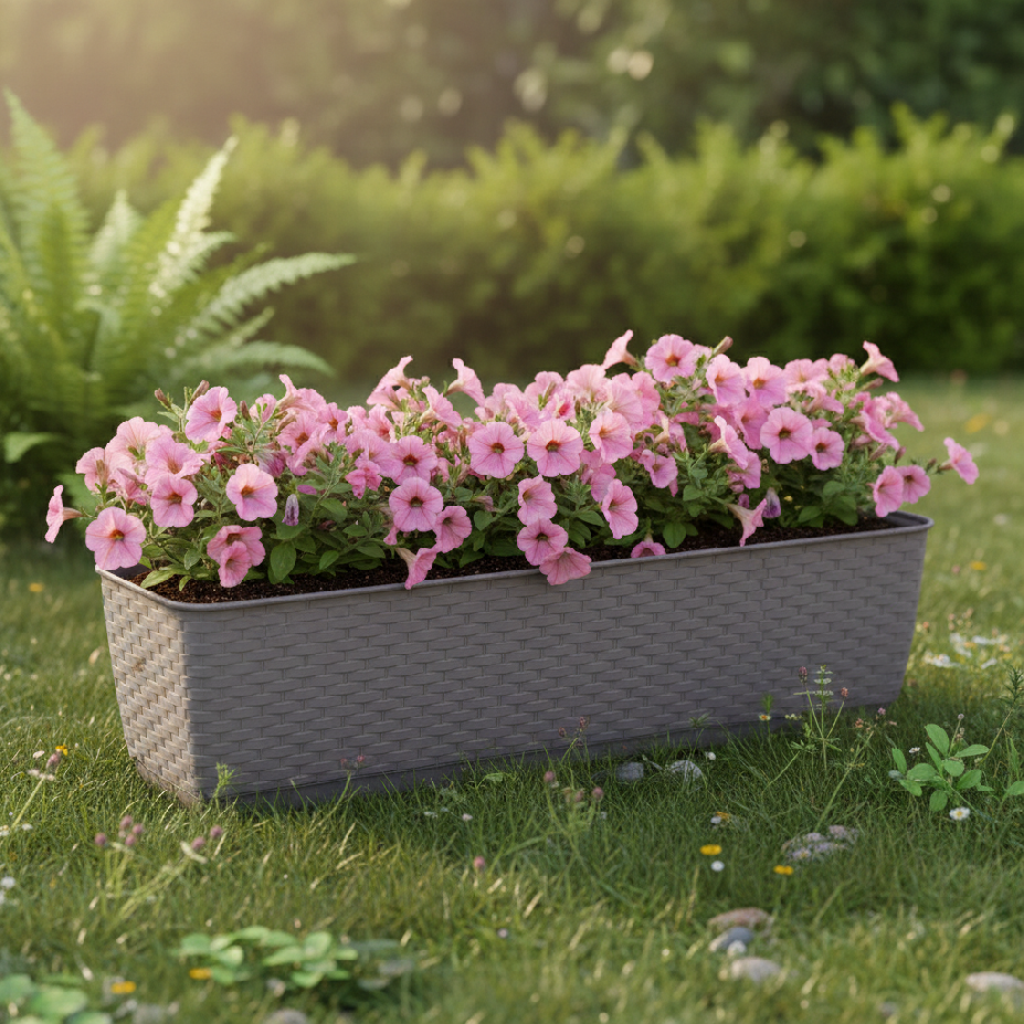 Záhradný kvetináč RATOLLA P z kvalitného a odolného plastu imitujúci ratanový výplet. Súčasťou kvetináča je miska na vodu integrovaná do dizajnu kvetináča, čo umožňuje ľahké a efektívne zalievanie vašich rastlín. Tento inovatívny prvok nielenže udržuje pôdu vlhkú, ale aj minimalizuje potrebu častého zavlažovania, čo robí starostlivosť o vaše kvety a rastliny jednoduchšou a efektívnejšou.