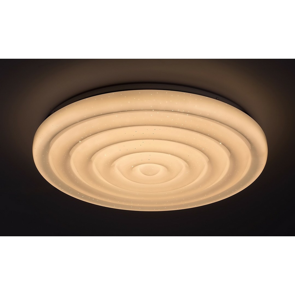 Okrúhle stropné svietidlo Katina s trblietavým efektom odporúčame tým, ktorí hľadajú model striedmy, ale zároveň poskytujúci extra funkcie do modernej obývacej izby či spálne. Vďaka bielej farbe svietidla takmer splynie s typickým svetlým odtieňom stropu.Katina, vyrobená z kovu, je doplnená plastovým tienidlom a má zabudovaný LED svetelný zdroj energetickej triedy F, ktorý má výkon 36 W, svietivosť 3070 lúmenov s tienidlom, 3600 lúmenov bez tienidla a skutočne fantastická životnosť: 50 000 hodín!Farebnú teplotu lampy je možné nastaviť v rozmedzí 3000-6500 K, tzn. môže svietiť teplým, prirodzeným alebo studeným bielym svetlom. Medzi ďalšie doplnky patrí nastaviteľný jas, pamäť, časovač a nočné funkcie. Farebnú teplotu a funkciu pamäte je možné nastaviť pomocou spínača alebo diaľkového ovládača, zatiaľ čo jas a funkciu časovača je možné nastaviť pomocou diaľkového ovládača.Priemer stropného svietidla je 475 mm a vzdialenosť od stropu 70 mm.