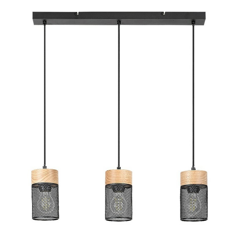 Callum prírodné drevené časti tvoria vzrušujúcu kombináciu s priemyselne vyzerajúcimi tienidlami. Svietidlo je možné použiť s tromi svetelnými zdrojmi, každý s výkonom do 25 W, objímka typu E27. Podľa vkusu si môžete vybrať svetelné zdroje s teplým alebo prirodzeným bielym svetlom. Ak sa rozhodnete v prospech prvého, môžeme týmto svietidlom posilniť domácu, intímnu atmosféru v obývačke.Rozmery trojitého lustra Callum sú nasledujúce: šírka 600 mm, výška 170 mm, priemer každého tienidla 95 mm, previs 1200 mm. Tento model je dodávaný bez svetelných zdrojov.