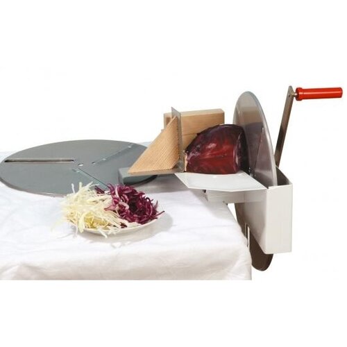 Pomocou tohto ručného rotačného strúhadla ľahko a rýchlo nakrájate kapustu. Celý prístroj je umývateľný a rozoberateľný, takže ho možno pohodlne skladovať. Strúhadlo sa dá pripevniť na roh stola, takže je plne stabilné. Kotúč s priemerom 28 cm obsahuje 5 nožov.