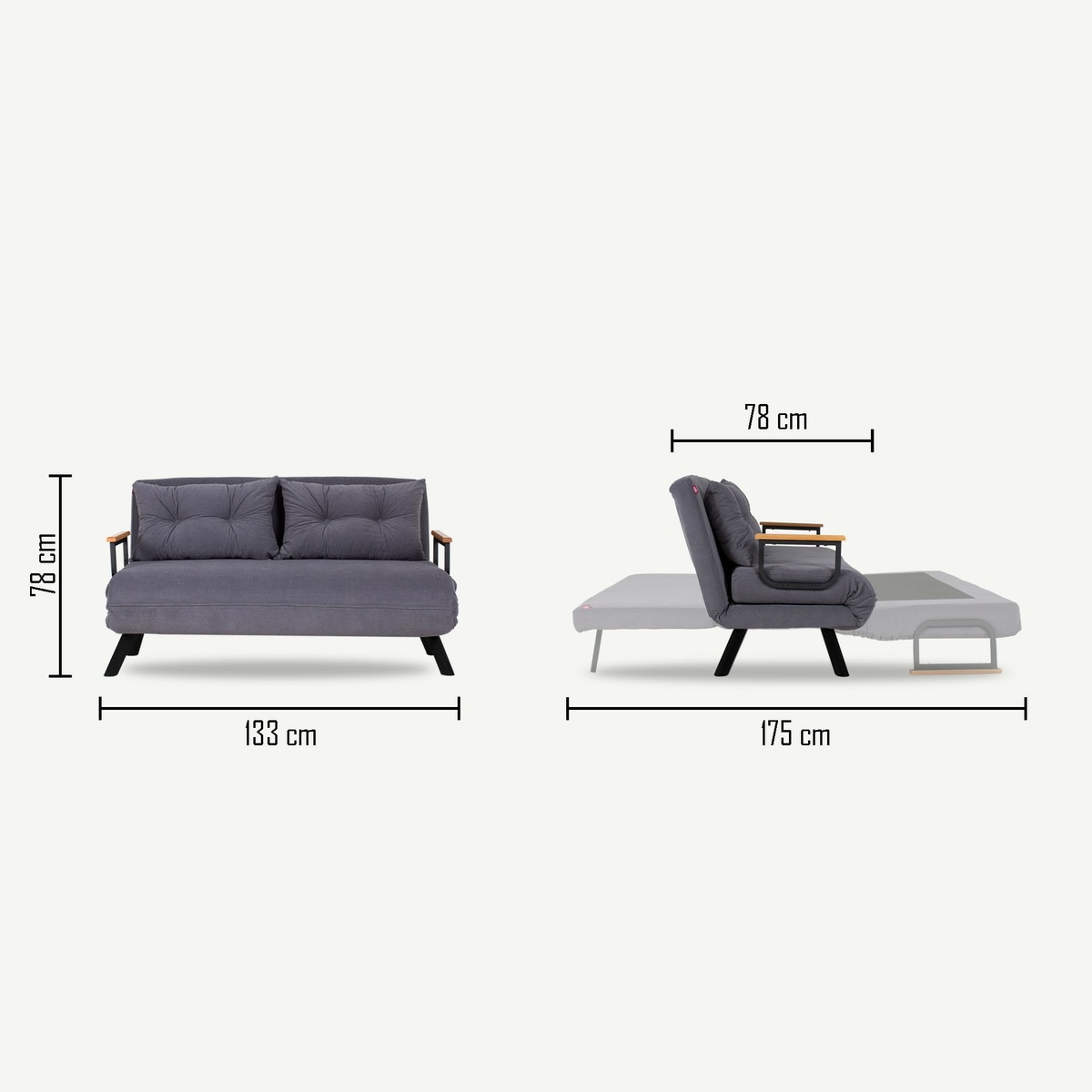 Decentná sivá farba a moderný dizajn tohto rozkladacieho gauča z neho robí dokonalý doplnok do akéhokoľvek súčasného obytného priestoru. Či už sa snažíte o vzhľad inšpirovaný hotelom alebo industriálnu atmosféru, tento kus nábytku pozdvihne váš interiér.