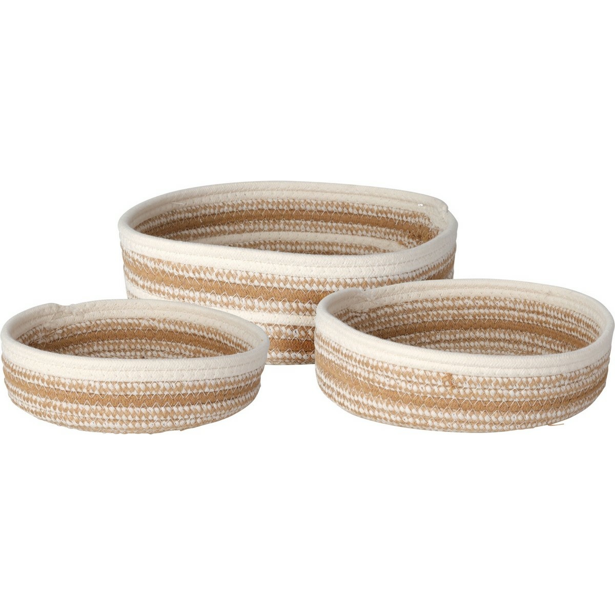 Táto sada krásnych pletených košov sa bude hodiť do každej domácnosti. Môžete do nich uložiť deky, uteráky v kúpeľni, noviny alebo ich použiť ako obaly na kvetináče.Veľkosť malého koša: pr. 22 x v. 6 cmVeľkosť stredného koša: pr. 23 x v. 7 cmVeľkosť veľkého koša: pr. 26 x v. 8 cm